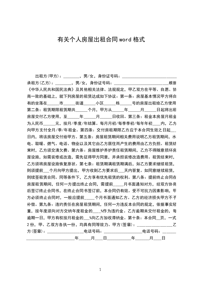 承租方(乙方):________,男/女,身份证号码:___________________________