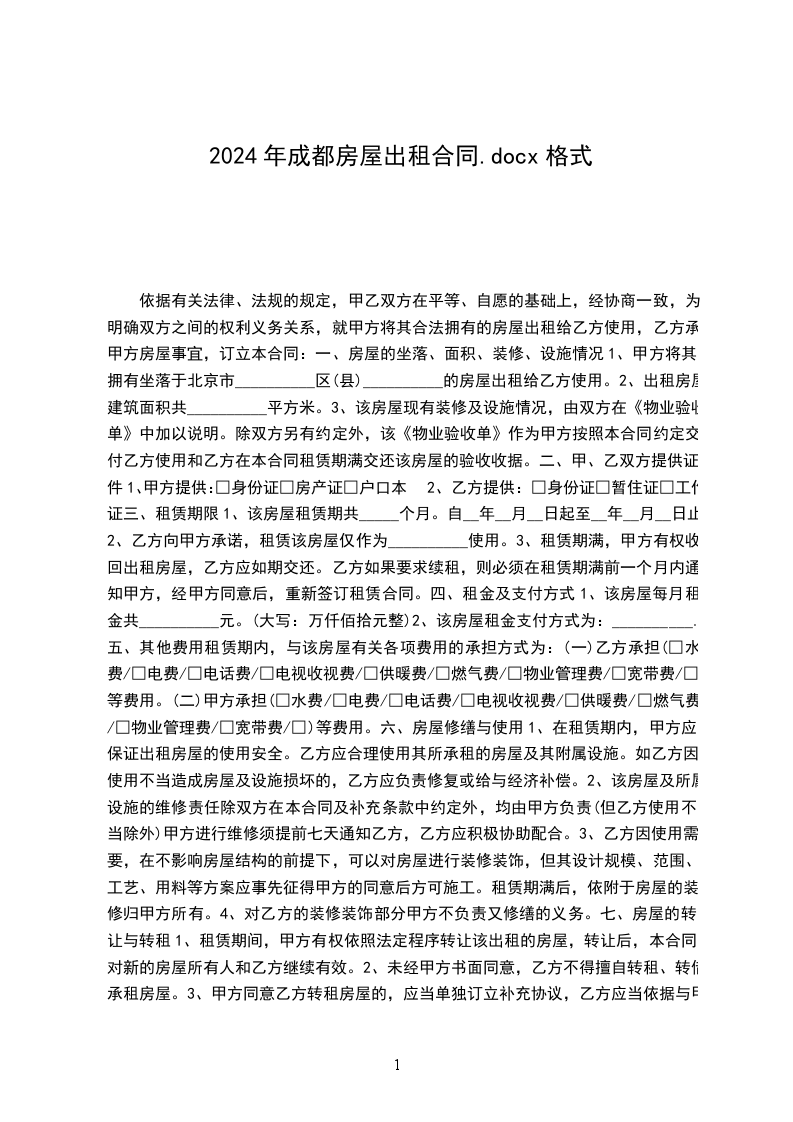 1、甲方向乙方提供相应的房内设备另立清单合同,清单合同与本合同同时生效等设施。