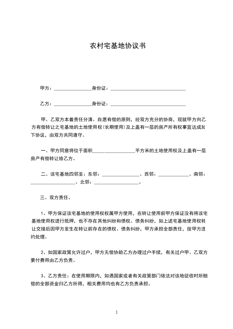 甲、乙方在平等互利的基础上,经充分协商,就宅基地赠与事宜,达成以下一致条款: