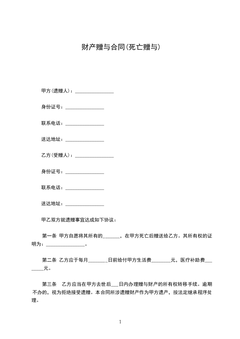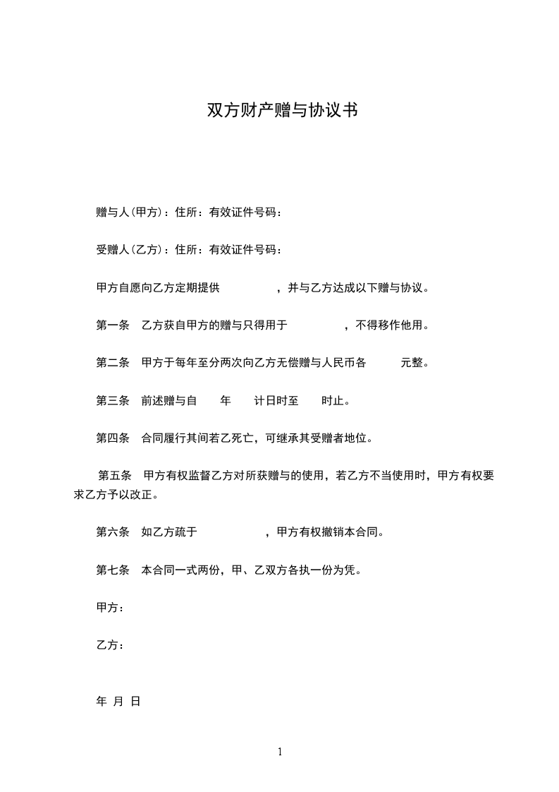 赠与人(甲方):住所:有效证件号码:
