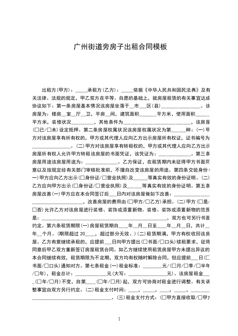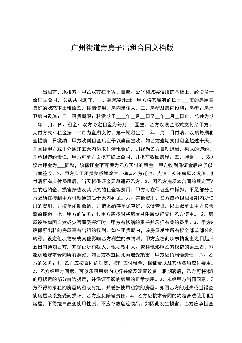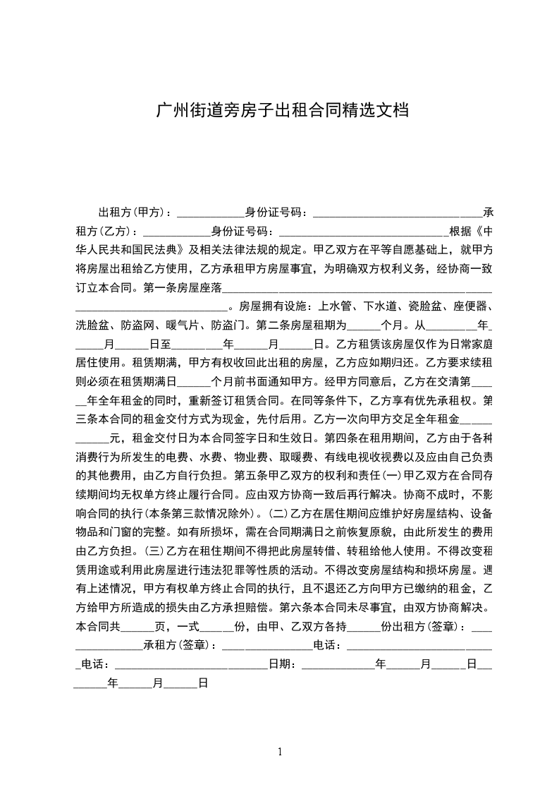 出租方:_________________(以下简称甲方)承租方:_________________(以下简称乙方)