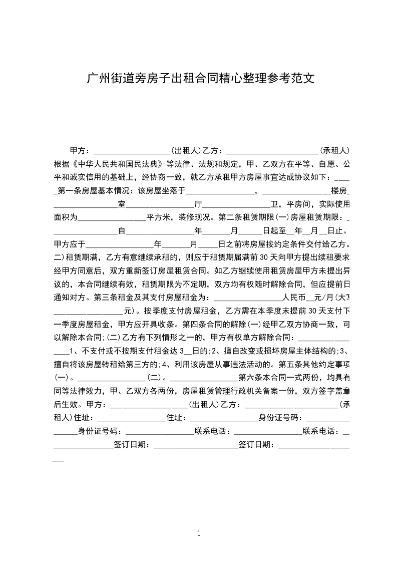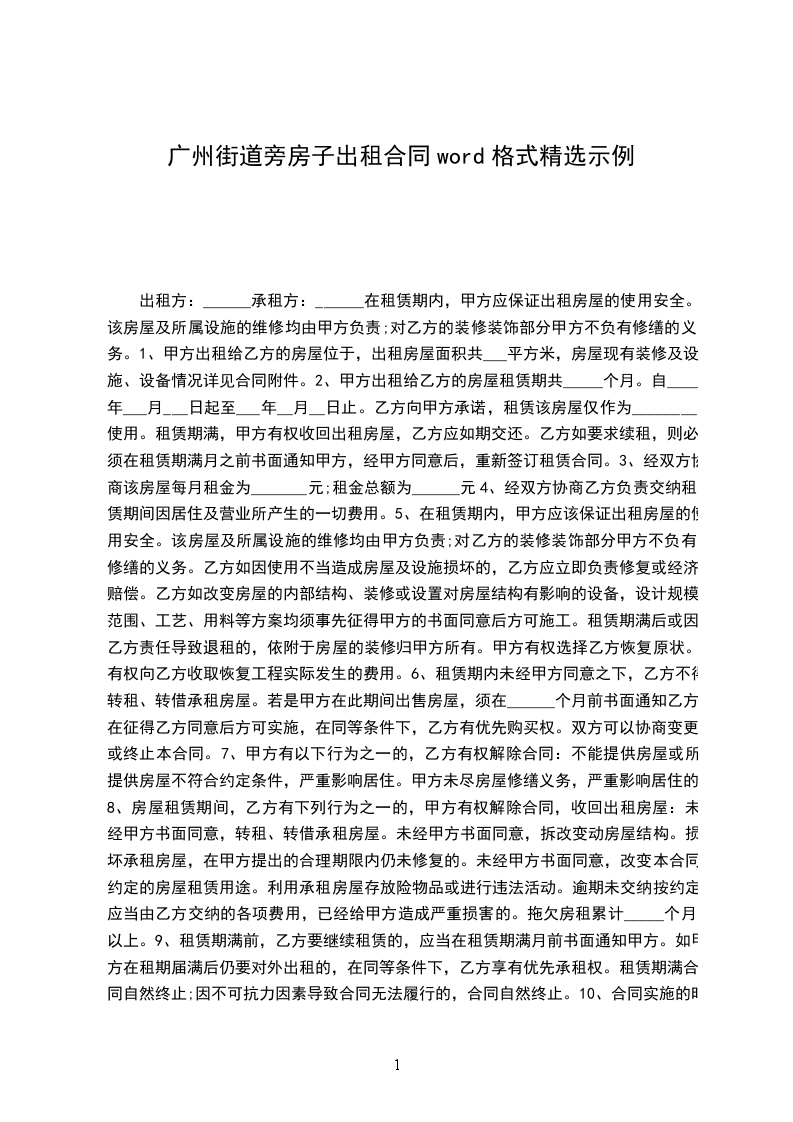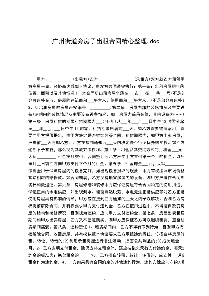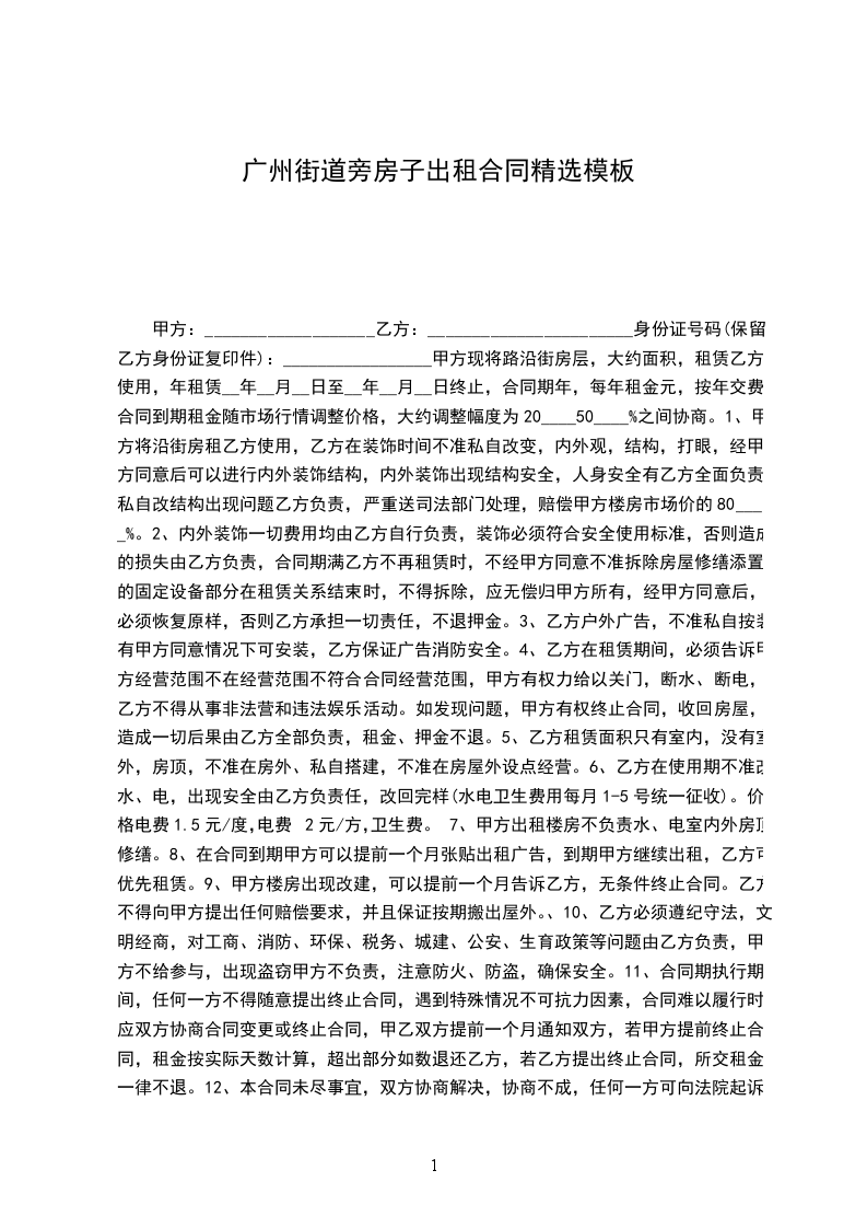 出租方:_________________(以下简称甲方)承租方:_________________(以下简称乙方)