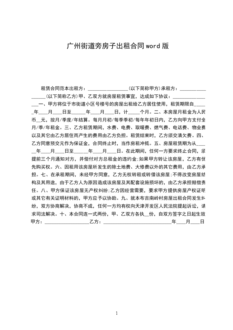 九、就本布吉南岭村房屋出租合同发生纠纷,双方协商解决,协商不成,任何一方均有权向天津开发区人民法院提起诉讼,请求司法解决。
