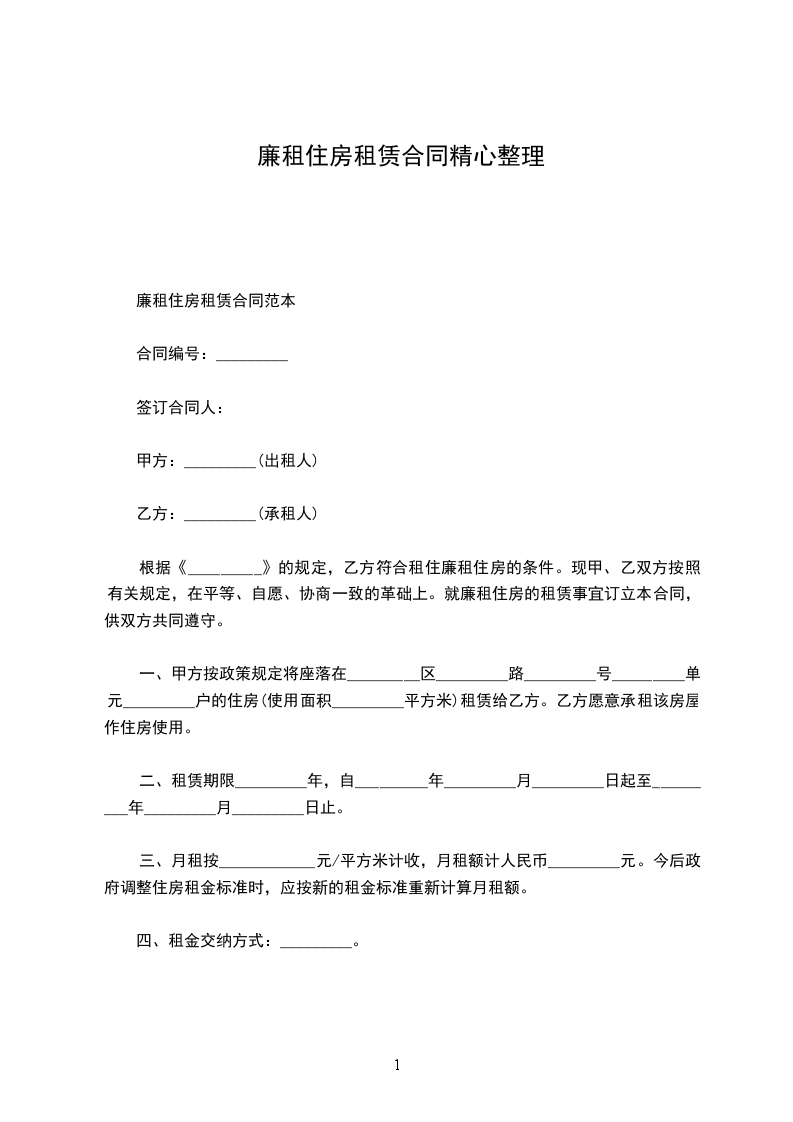 根据国家、自治区有关廉租住房管理规定,经甲方同民政、街办等部门严格审查、审核,乙方已具备廉租房居住条件,甲方按有关实物配租规定,配租乙方廉租房一套。现有关事宜签订如下协议:_________________