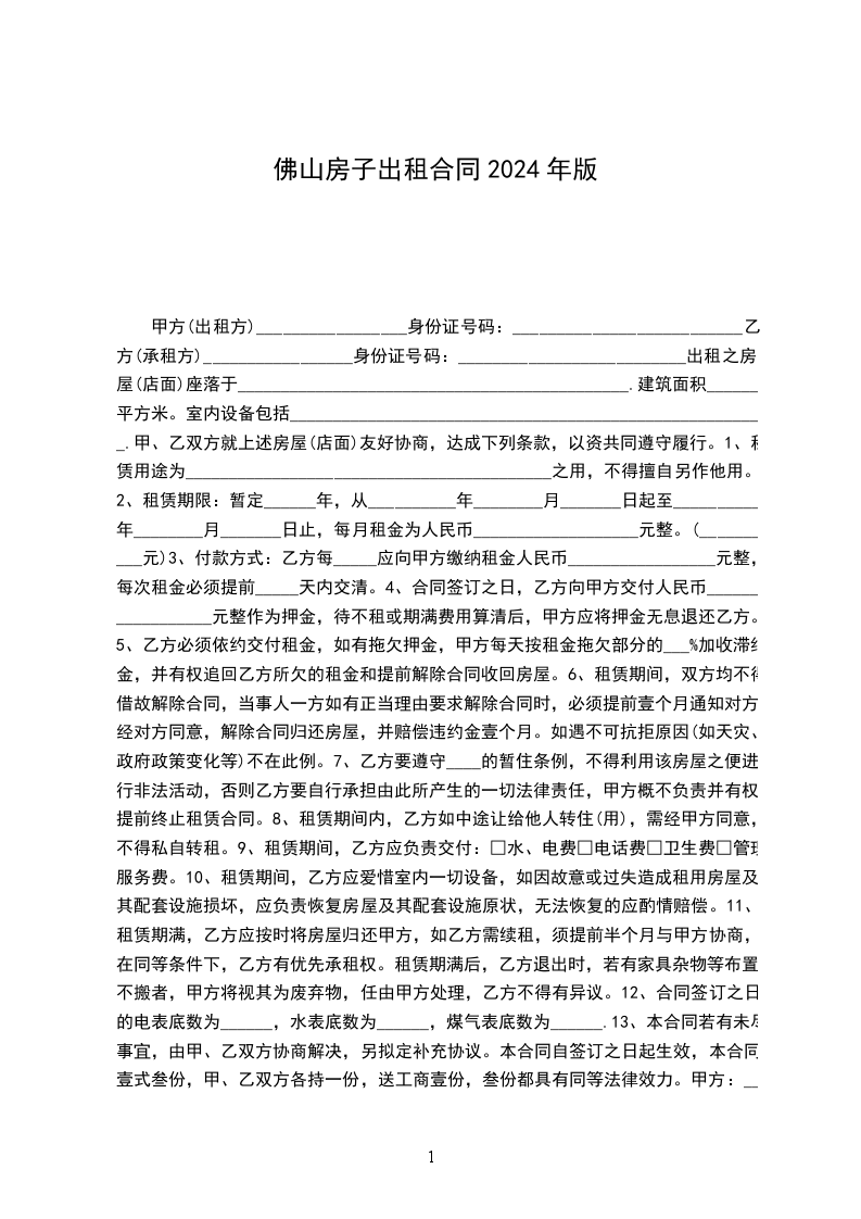 出租方(以下简称甲方)_____________________