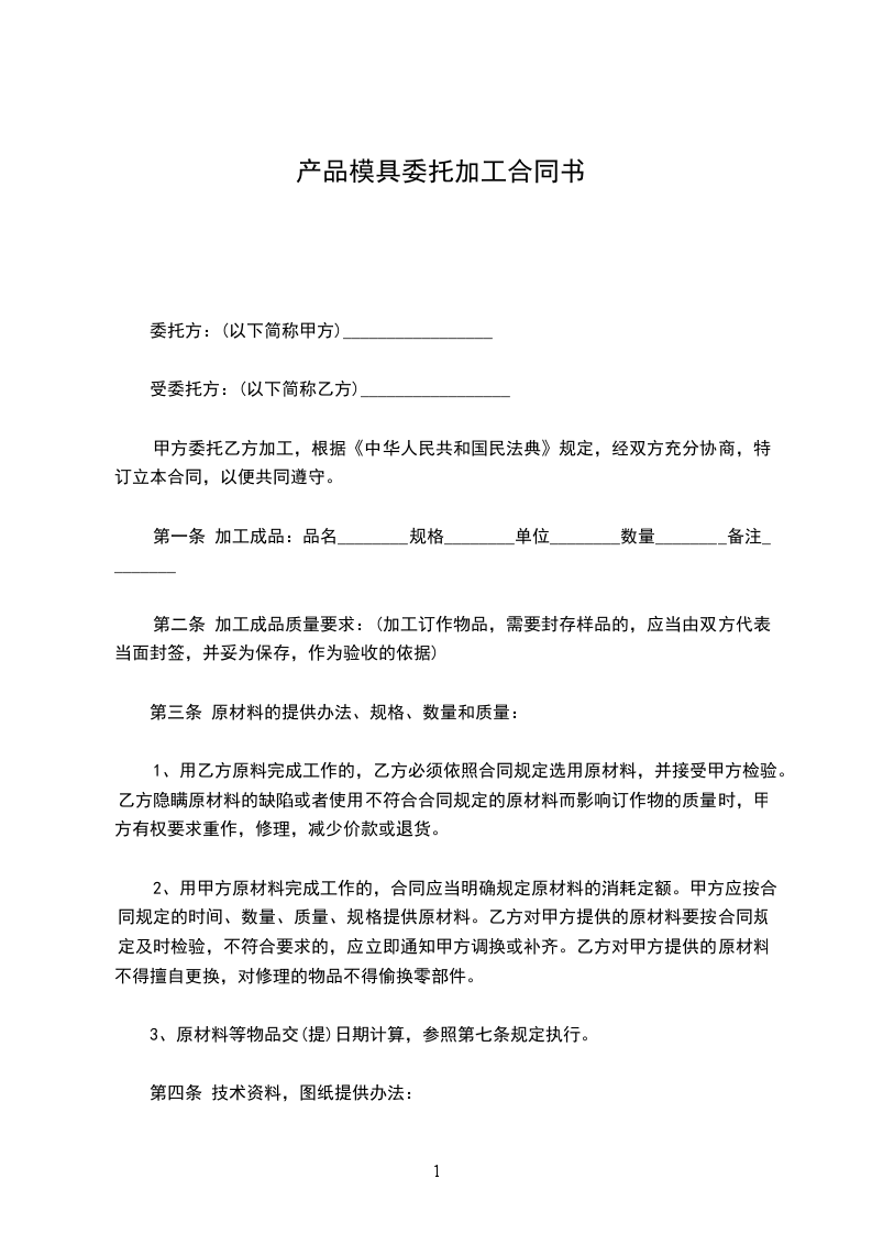 甲方委托乙方加工,根据《中华人民共和国民法典》规定,经双方充分协商,特订立本合同,以便共同遵守。