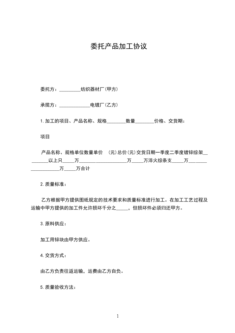 第一条 加工成品:品名________规格________单位________数量________备注________