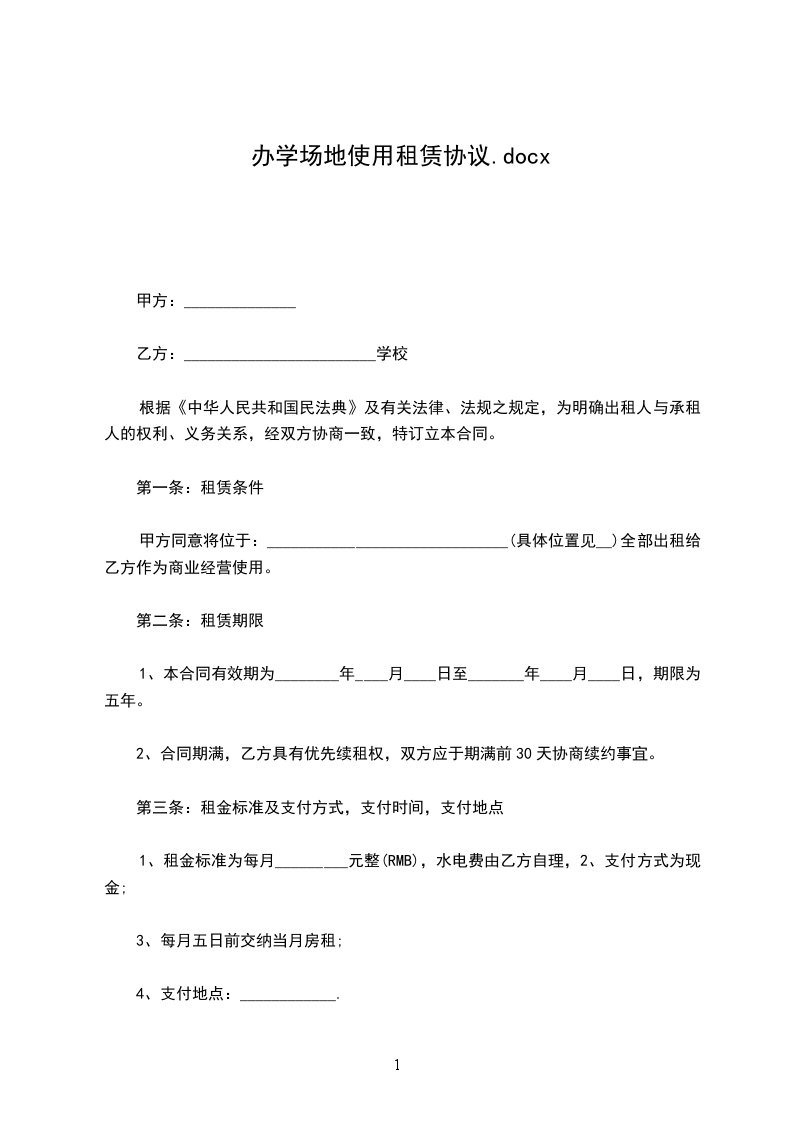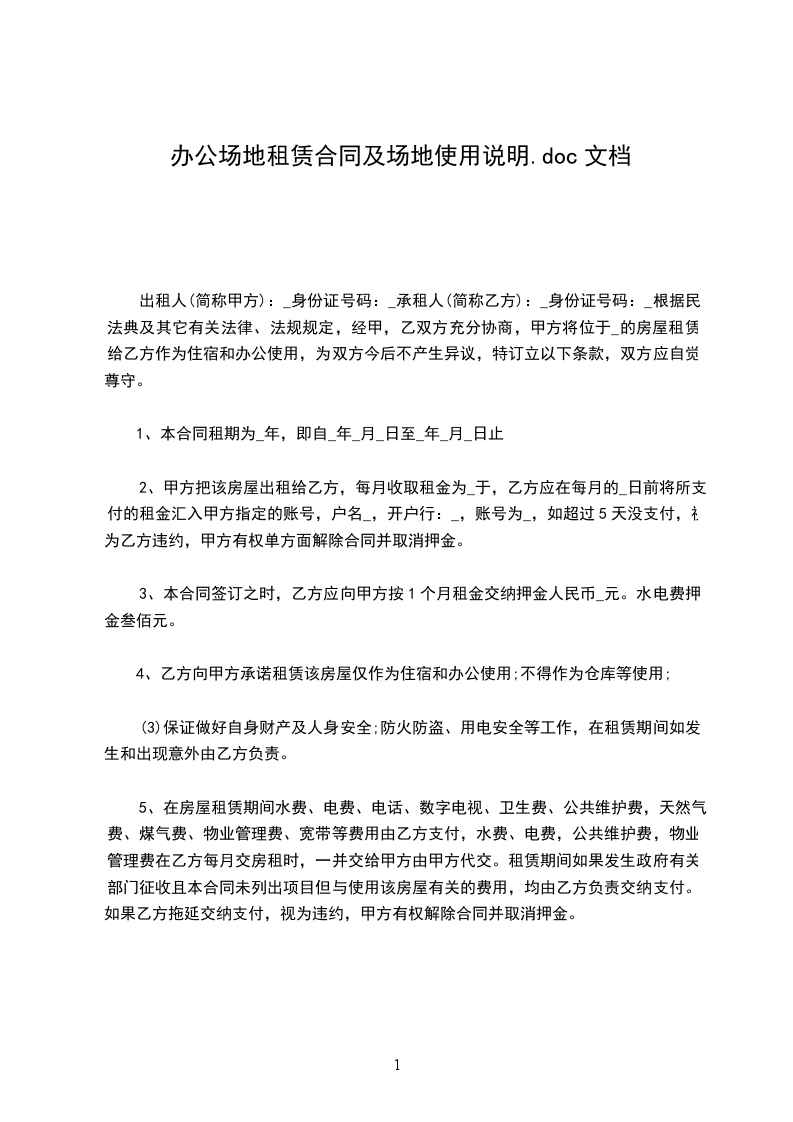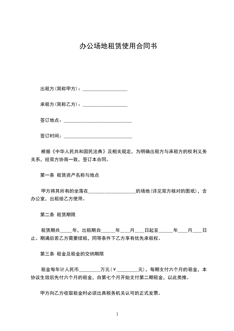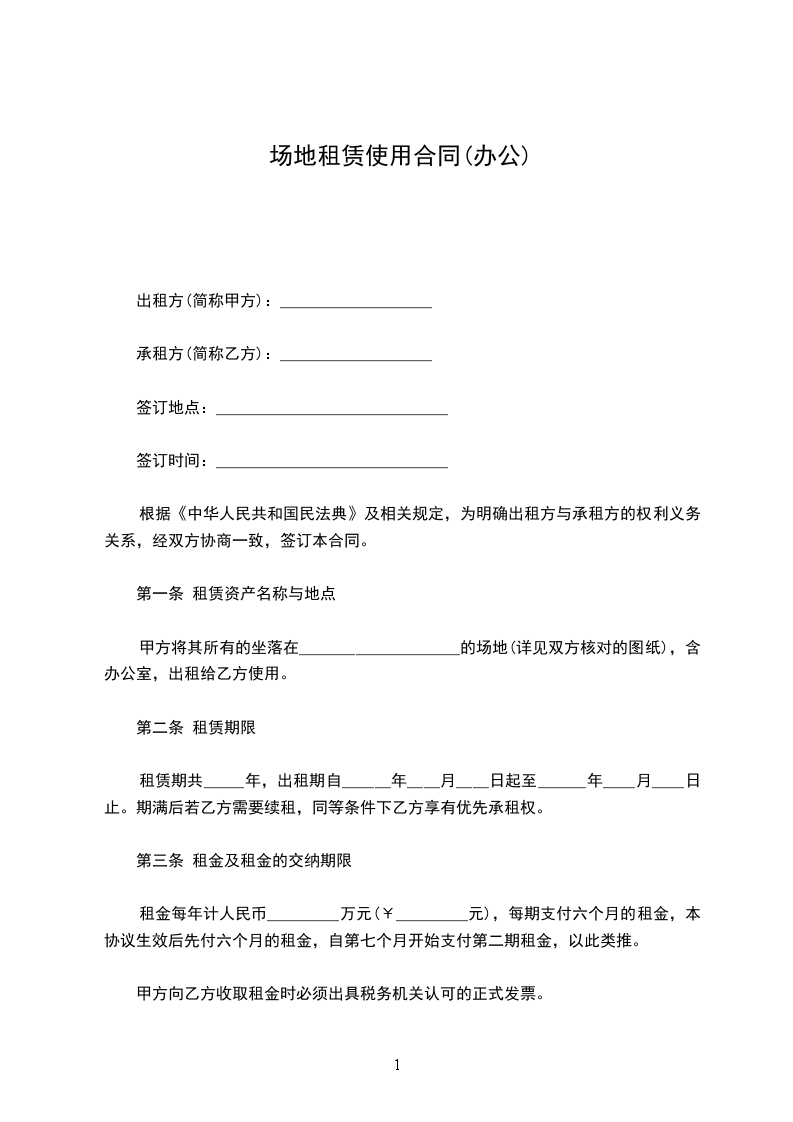 第二条 甲方将位于科技园 楼第 层的 单元、建筑面积共 平方米(含分摊面积,下同)的场地提供给乙方使用(附图纸一份)。场地使用期限为年,自年月日起正式启用并全额交费,至年月日止。(若提前入驻,计费时间从实际进驻日开始计算)当场地原为毛坯房时,乙方自行负责自用面积内的装修及风机盘管的购置、安装。为了保证整个大楼消防设施和中央空调风机盘管的安装质量,本大楼的消防设施和中央空调风机盘管由指定的公司安装。