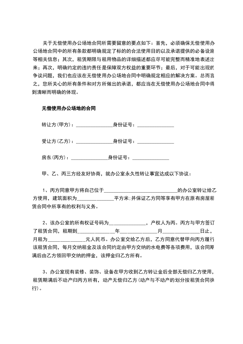 第三条 乙方可将上述场地作办公等用途,未经甲方书面同意,不得改变用途,亦不得转让场地使用权。乙方保证在上述场地使用过程中的行为符合法律、法规要求,符合国家环境保护、消防安全、劳动卫生等标准。
