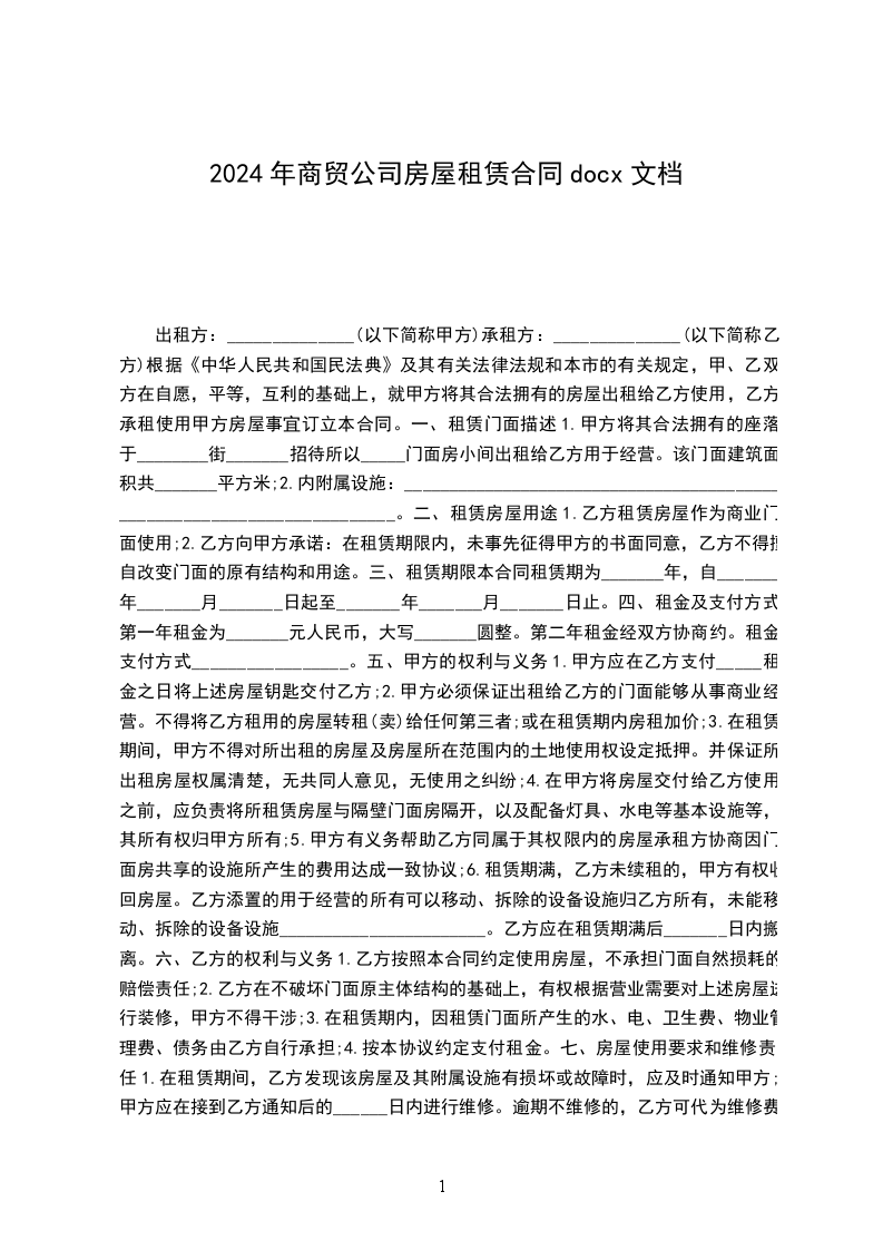 四、租赁期间,乙方应爱护甲方财产,注意安全,一切安全责任事故由乙方承担。如发现甲方财产损坏的,维护费用由乙方承担,但不可抗力的原因造成损坏的除外。