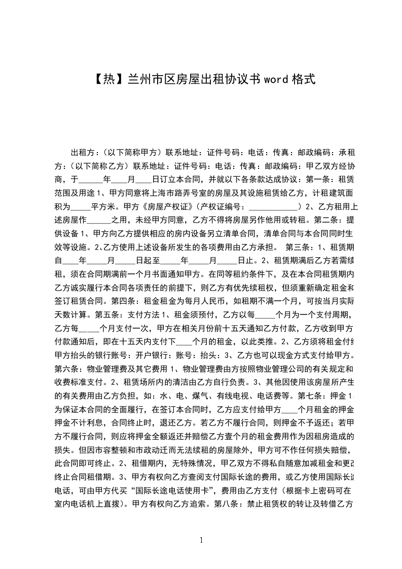 1、甲方同意将上海市路弄号室的房屋及其设施租赁给乙方,计租建筑面积为_____平方米。甲方《房屋产权证》(产权证编号:____________)