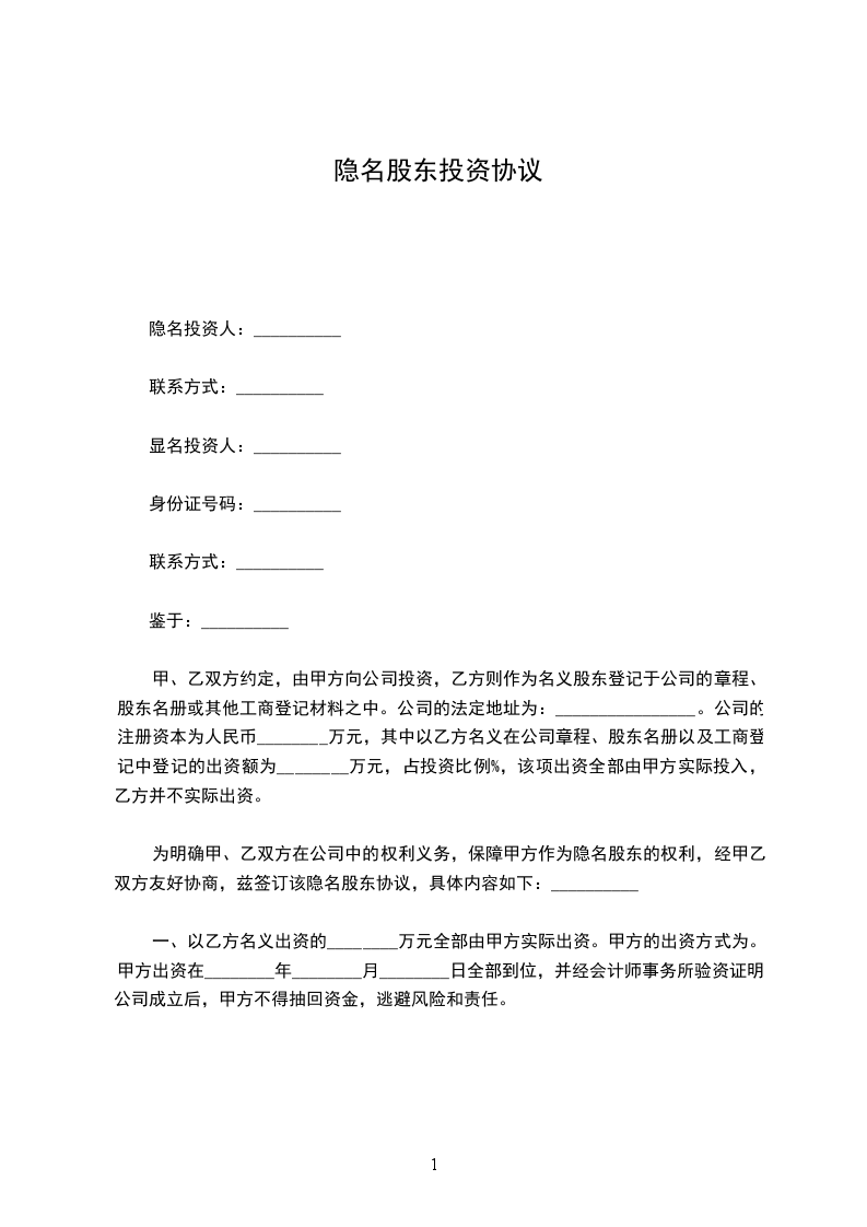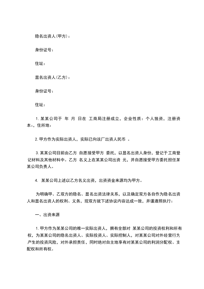 为明确甲、乙双方在公司中的权利义务,保障隐名股东的权利,经双方友好协商,兹签订该隐名投资协议,具体内容如下: