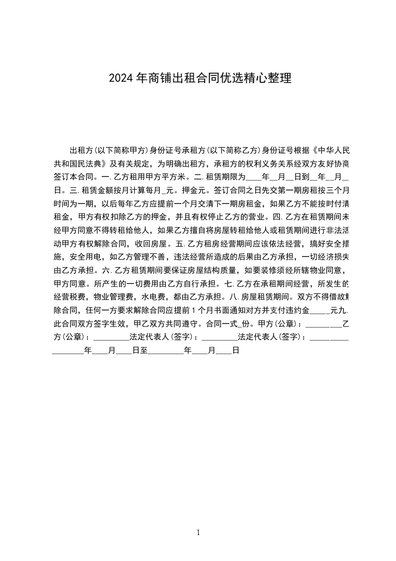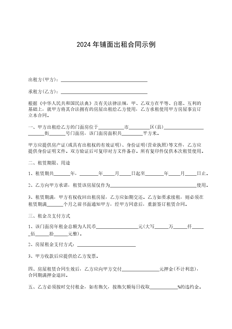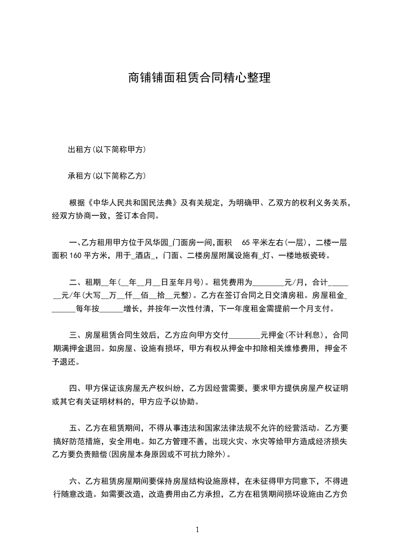 第一条甲方出租的商铺座落地址:___,建筑面积___㎡。