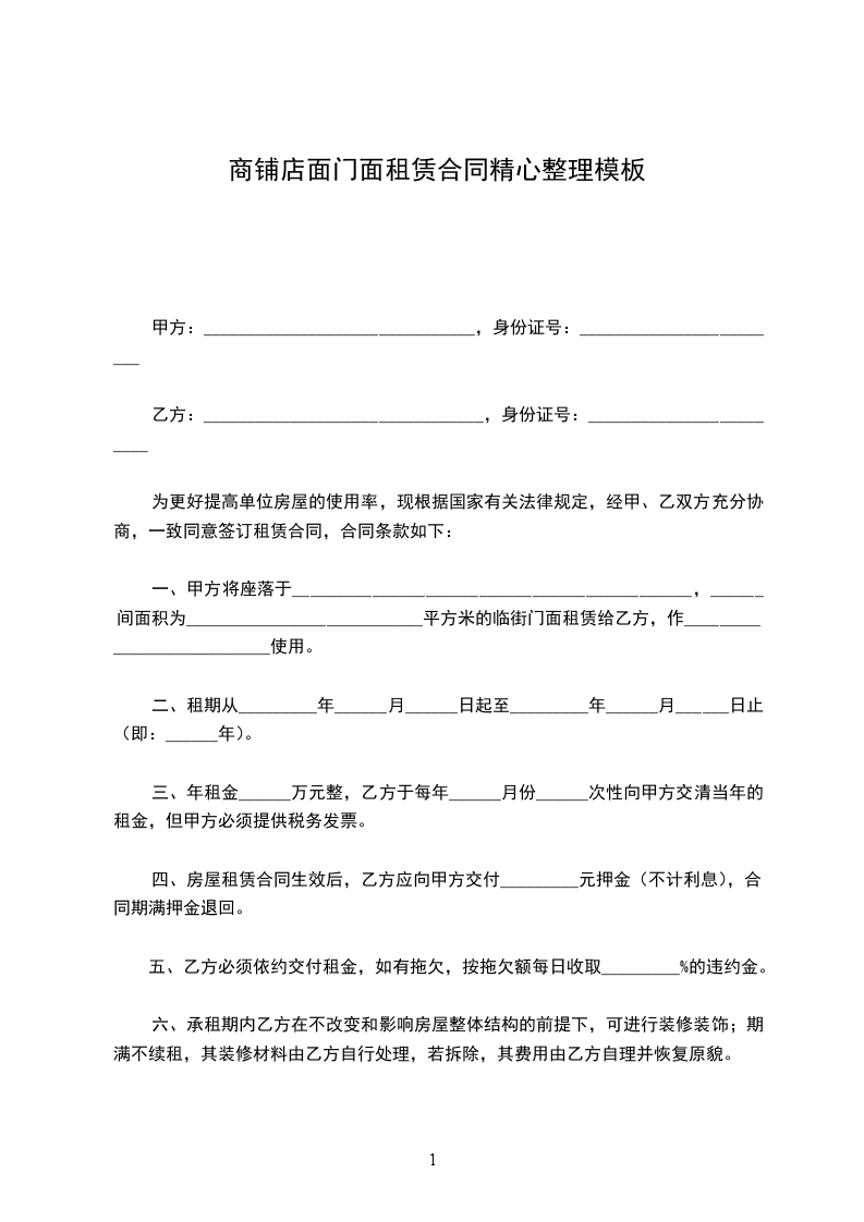 出租方(以下称甲方):身份证号: