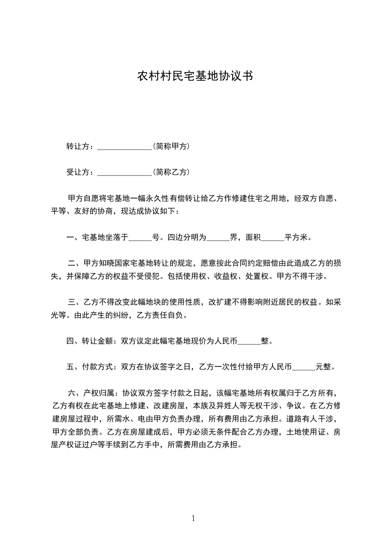 甲、乙方在平等互利的基础上,经充分协商,就宅基地赠与事宜,达成以下一致条款: