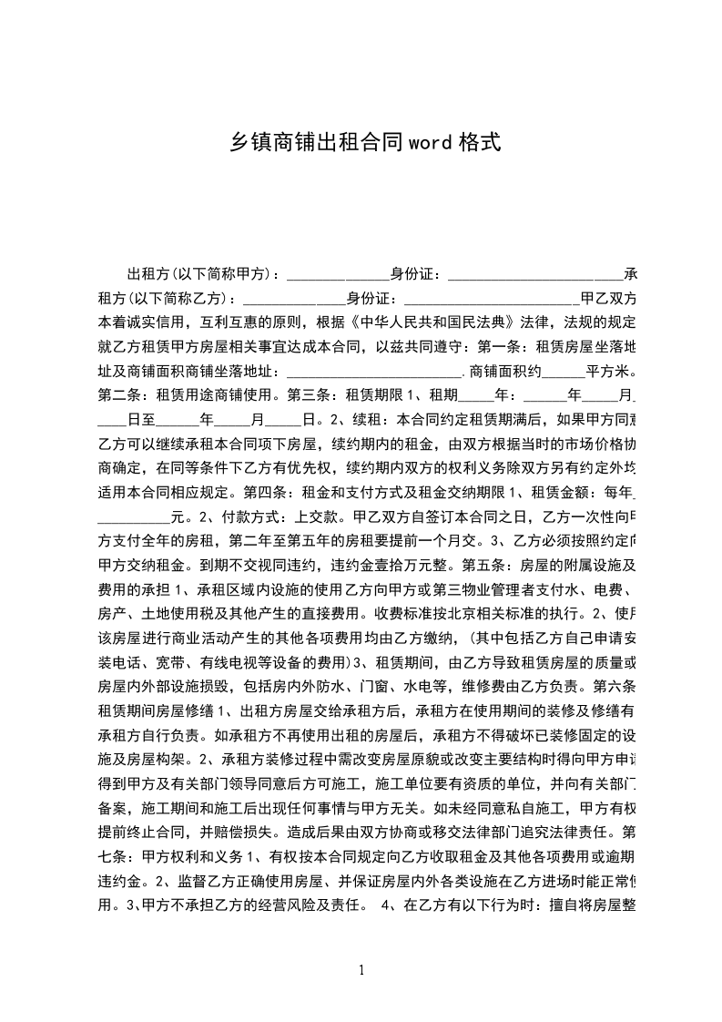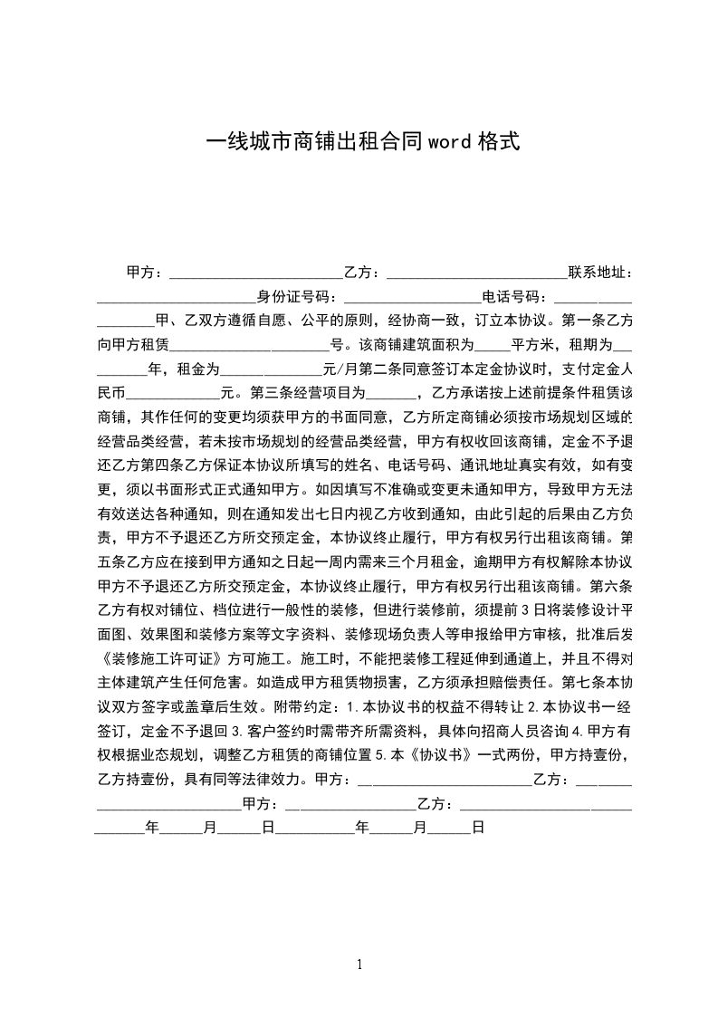 1.甲方现自愿将________________________________楼___________号商铺经营权租给乙方,租期从_________年___月____日起至_________年___月____日止,租期_________个月。