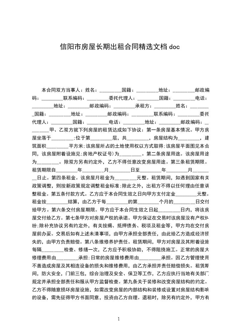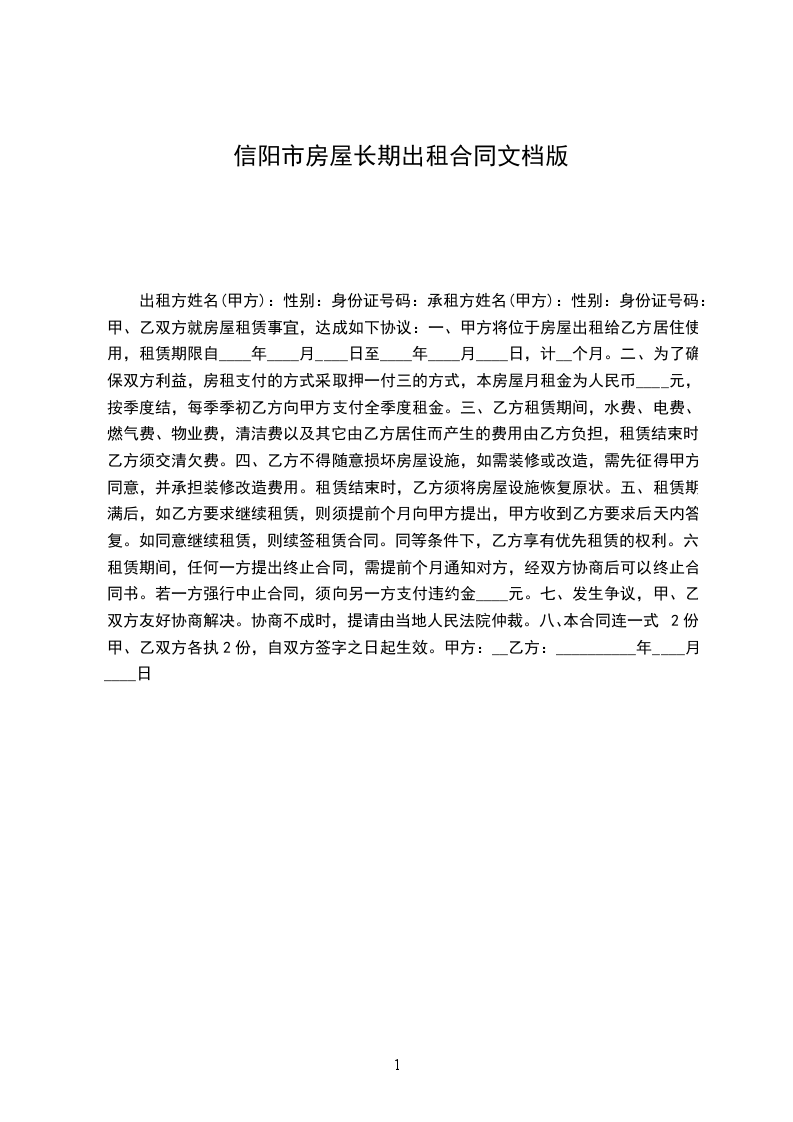 一、甲方将位于房屋出租给乙方居住使用,租赁期限自____年____月____日至____年____月____日,计__个月。