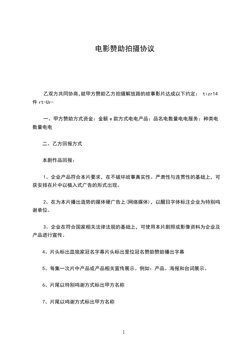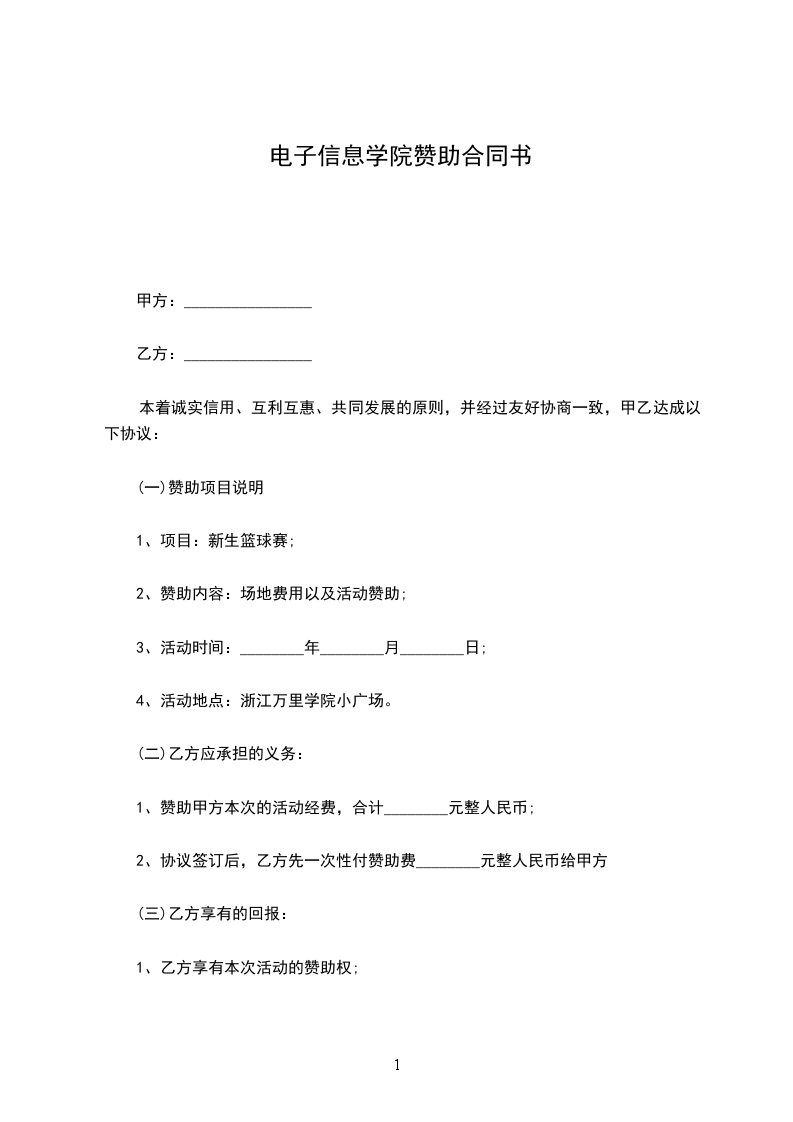 1、赞助甲方本次的活动经费,合计________元整人民币;