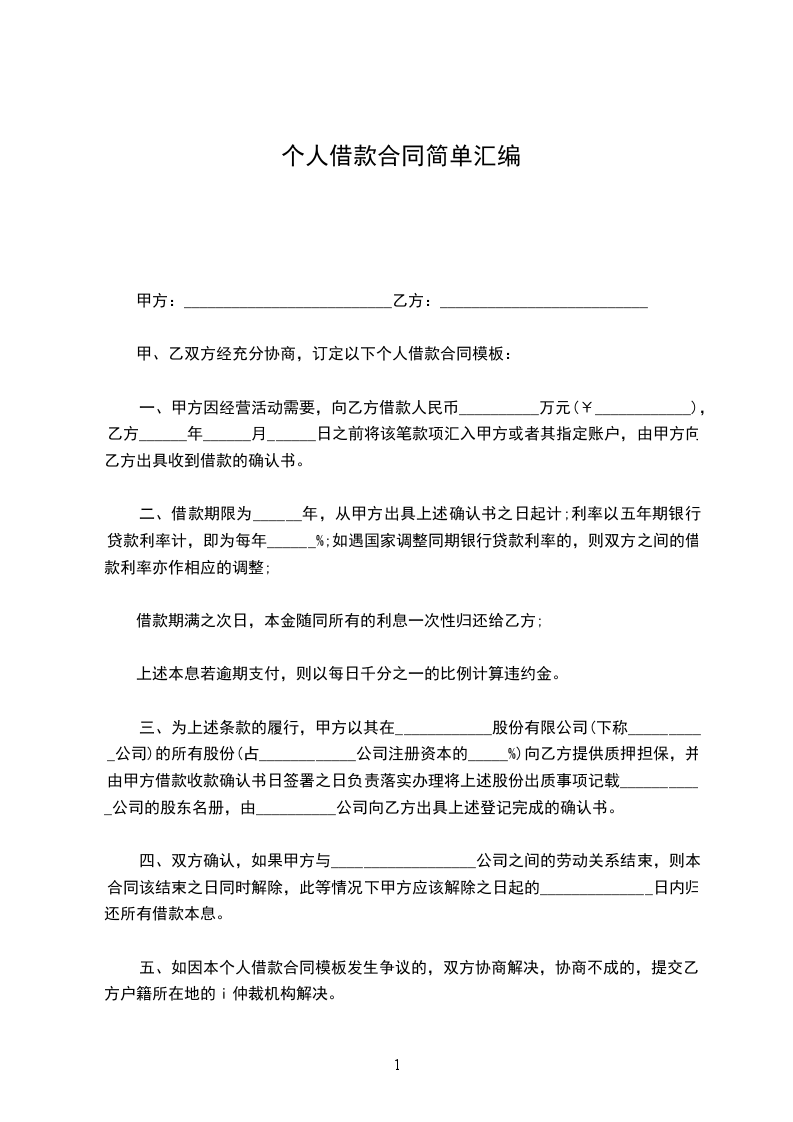 甲、乙双方经充分协商,订定以下个人借款合同模板: