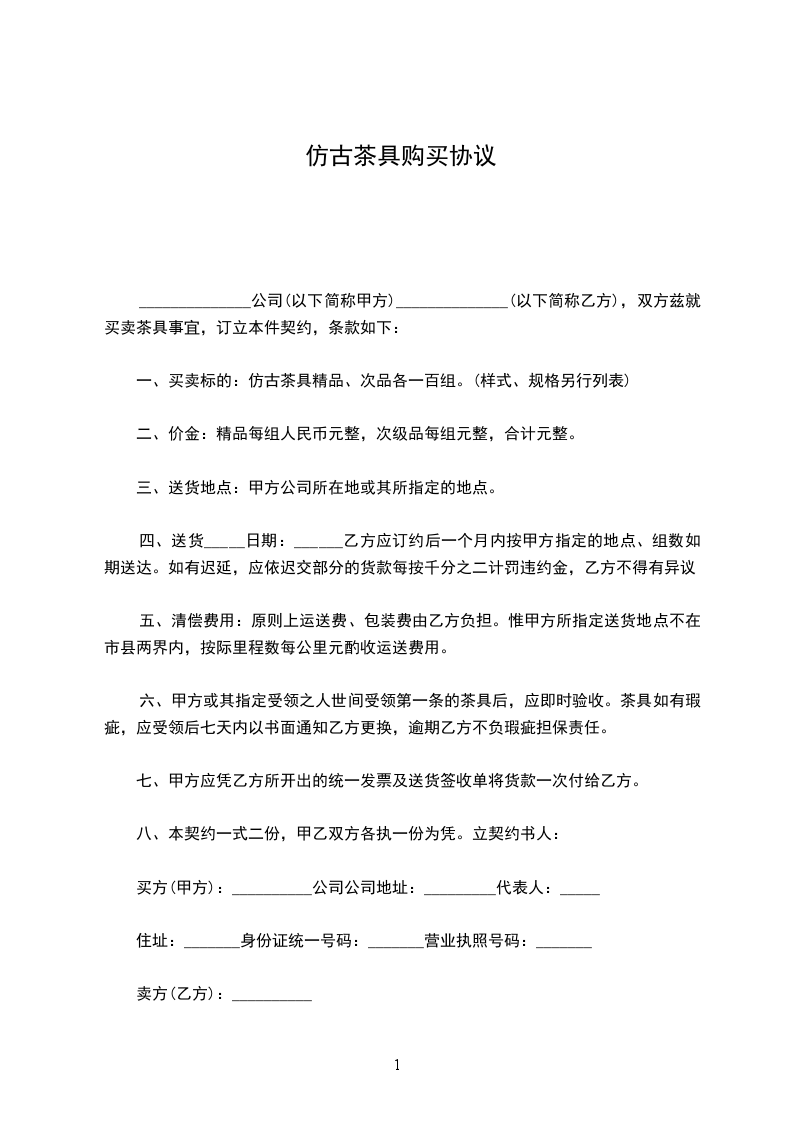 双方兹就买卖茶具事宜,订立本件契约,条款如下: