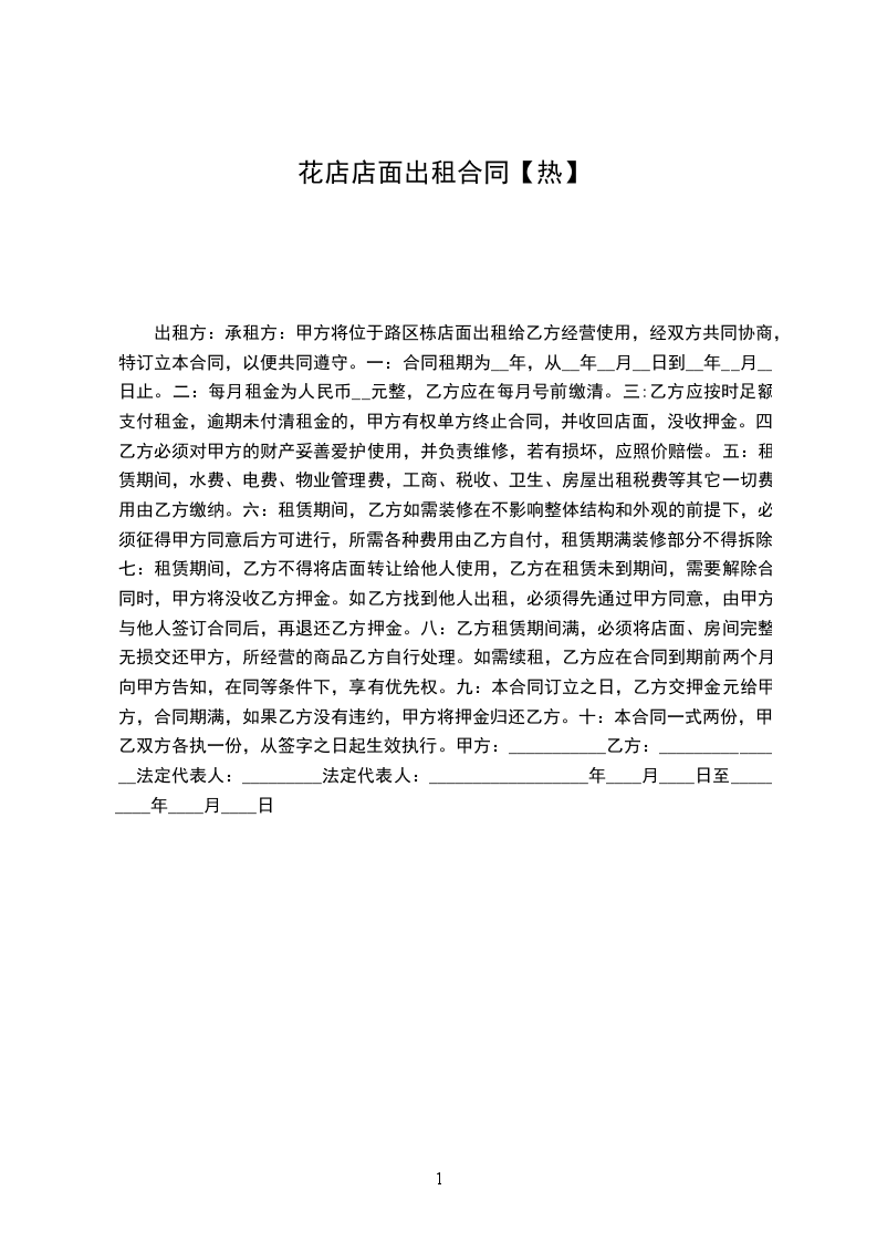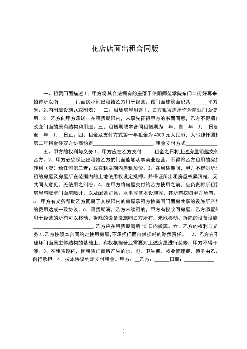 十二、本店面出租协议书样本一式两份,甲乙双方各执一份。