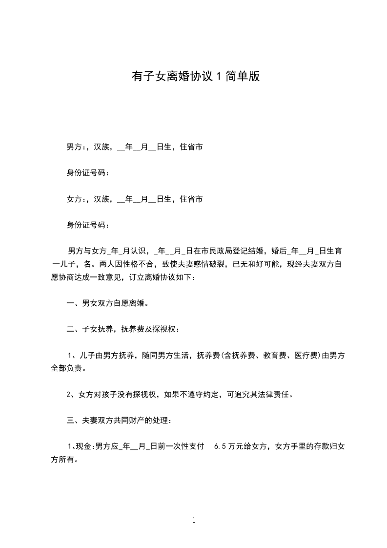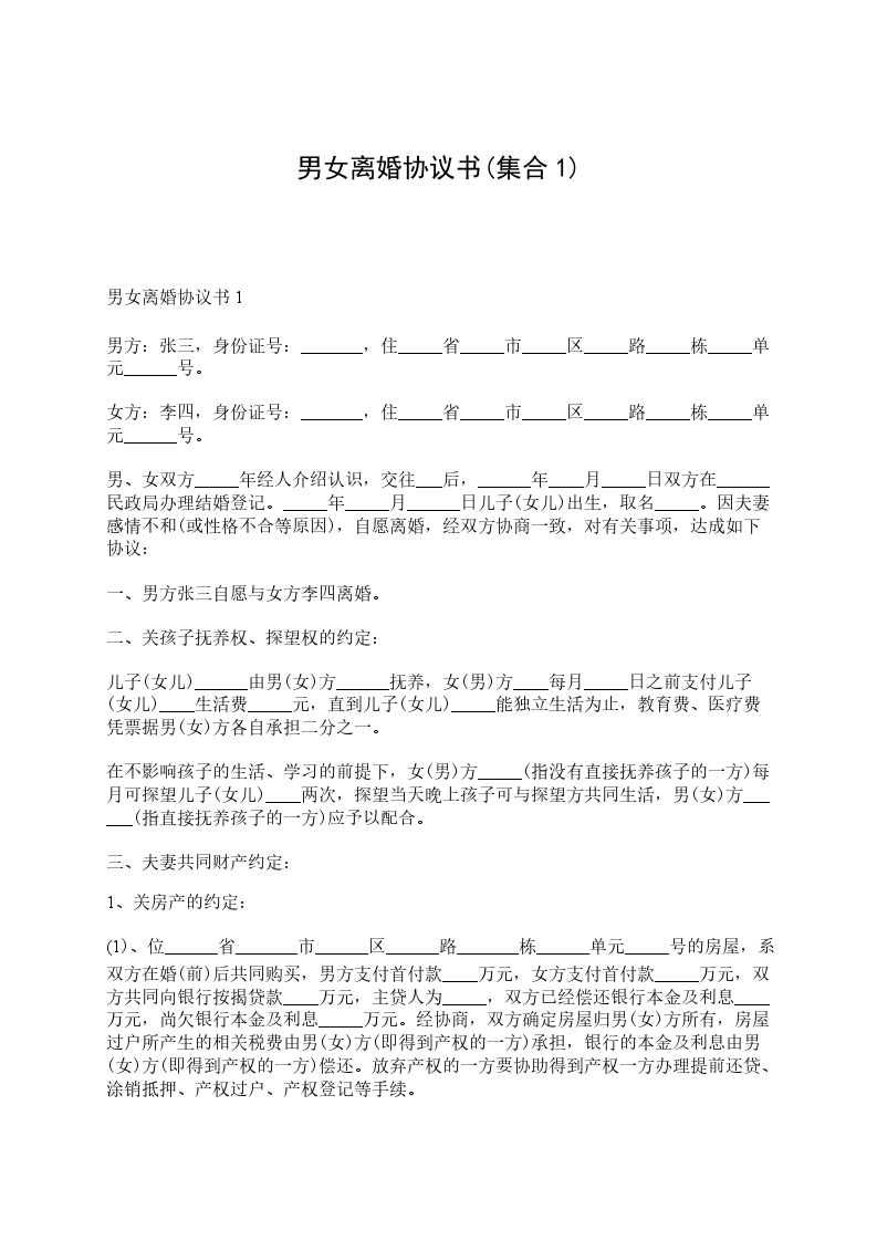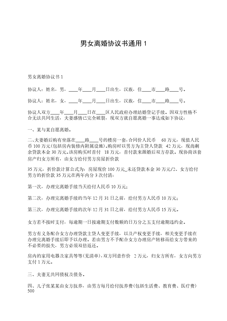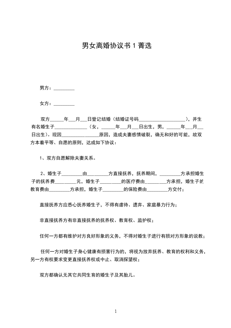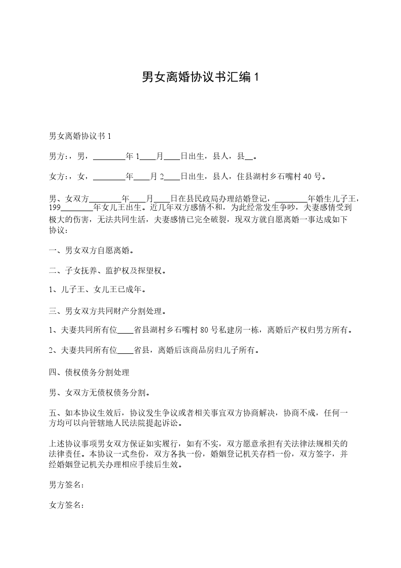 十、本协议一式三份,双方各执一份,婚姻登记机关存档一份。
