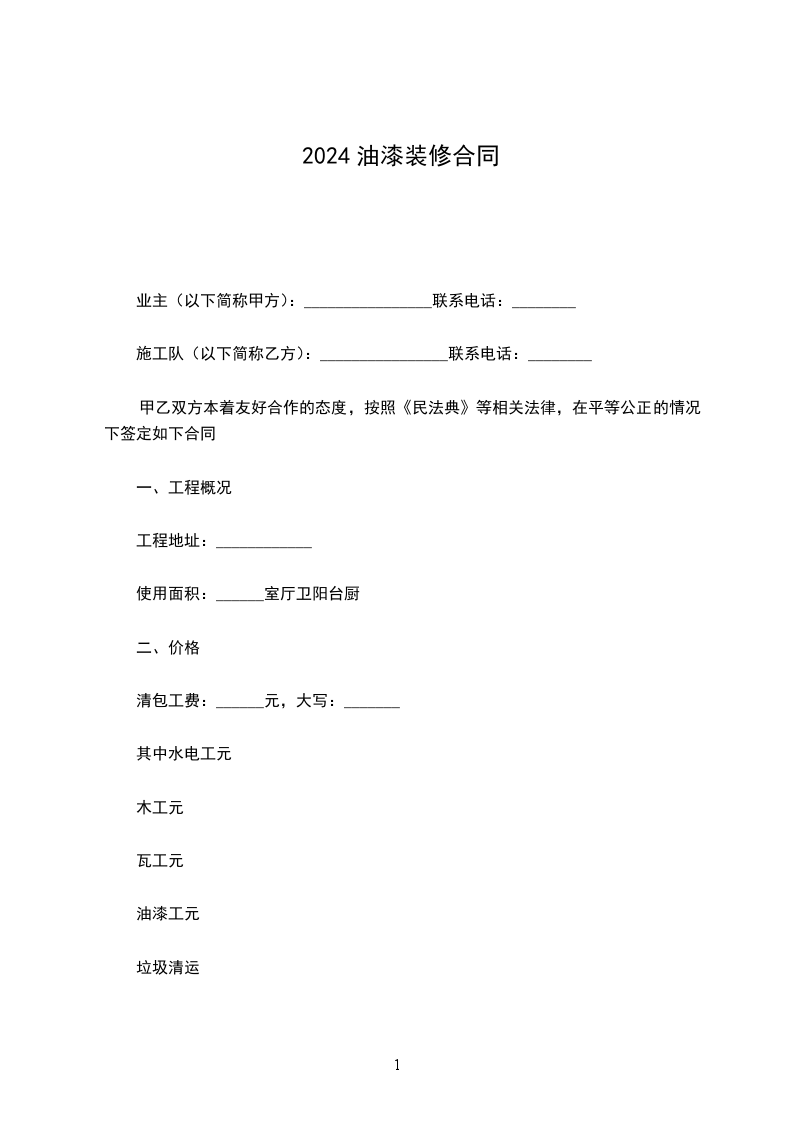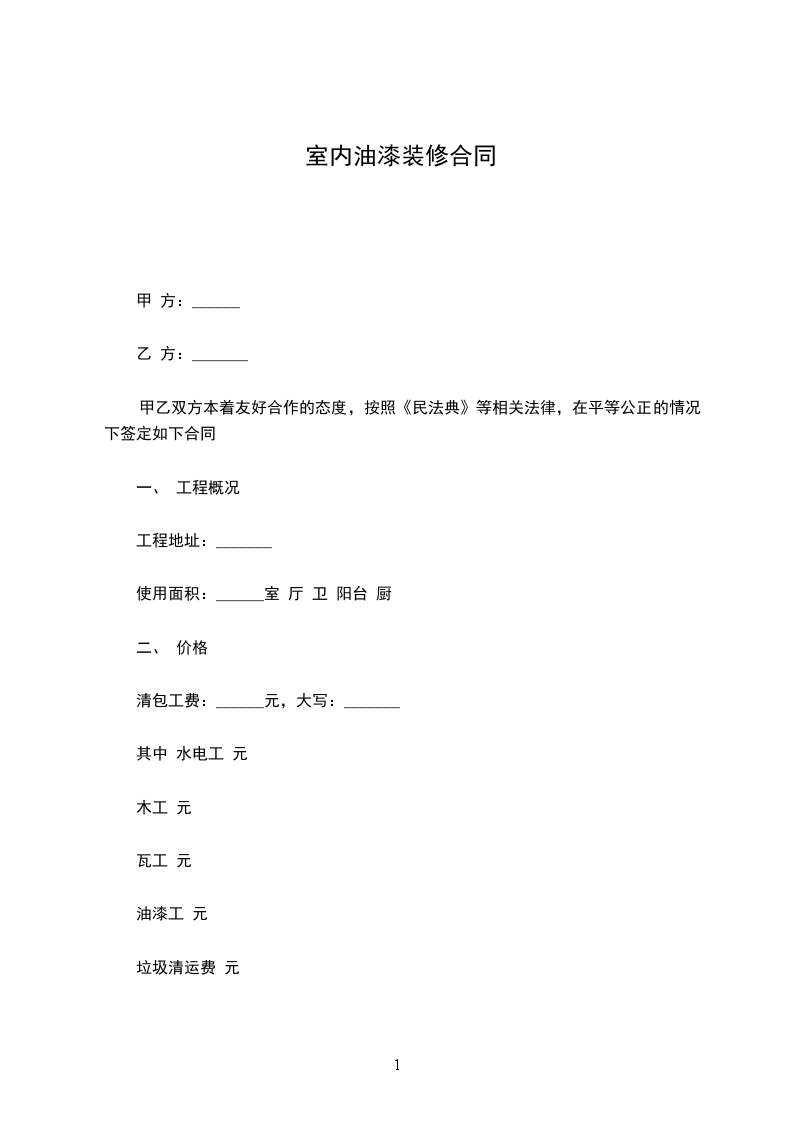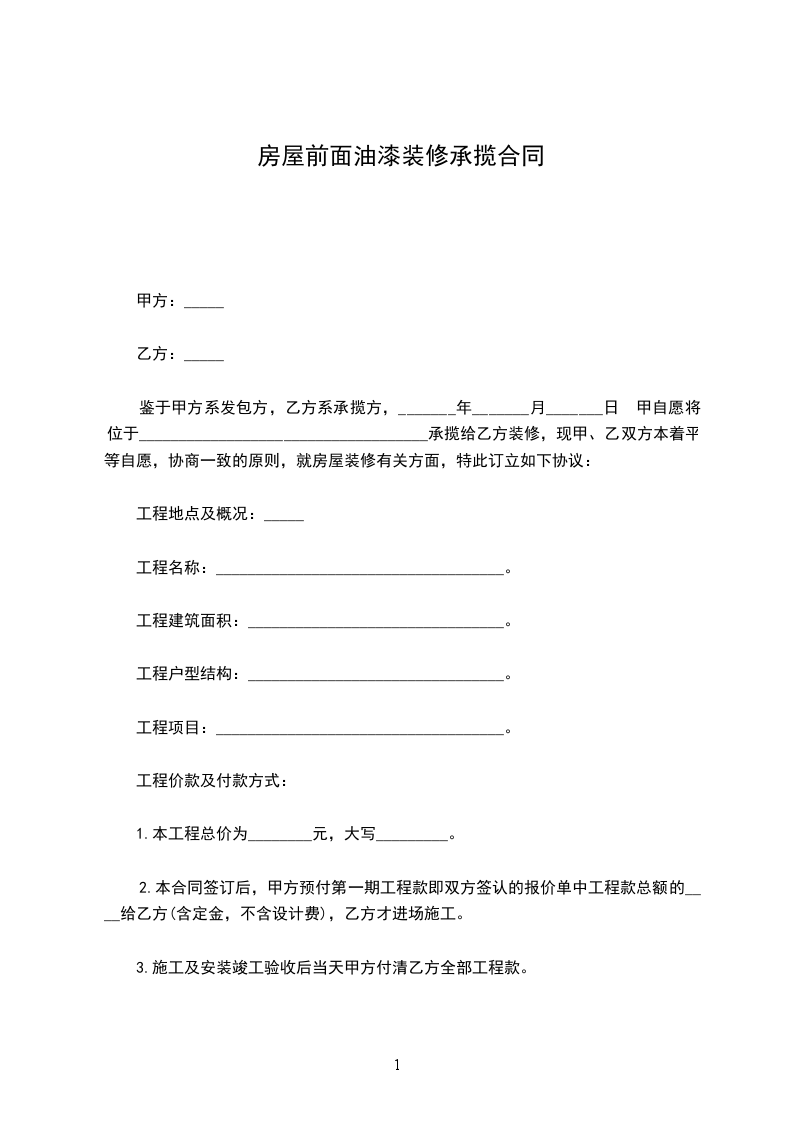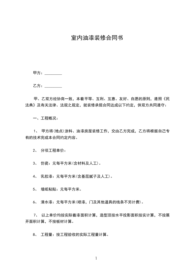 1、甲方将市马边店涂料、油漆房屋装修工作,交由乙方完成,乙方将根据自己专有的技术完成本合同约定内容。