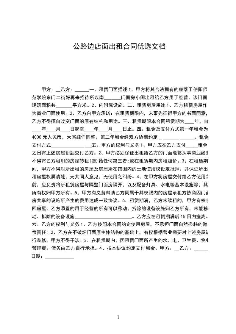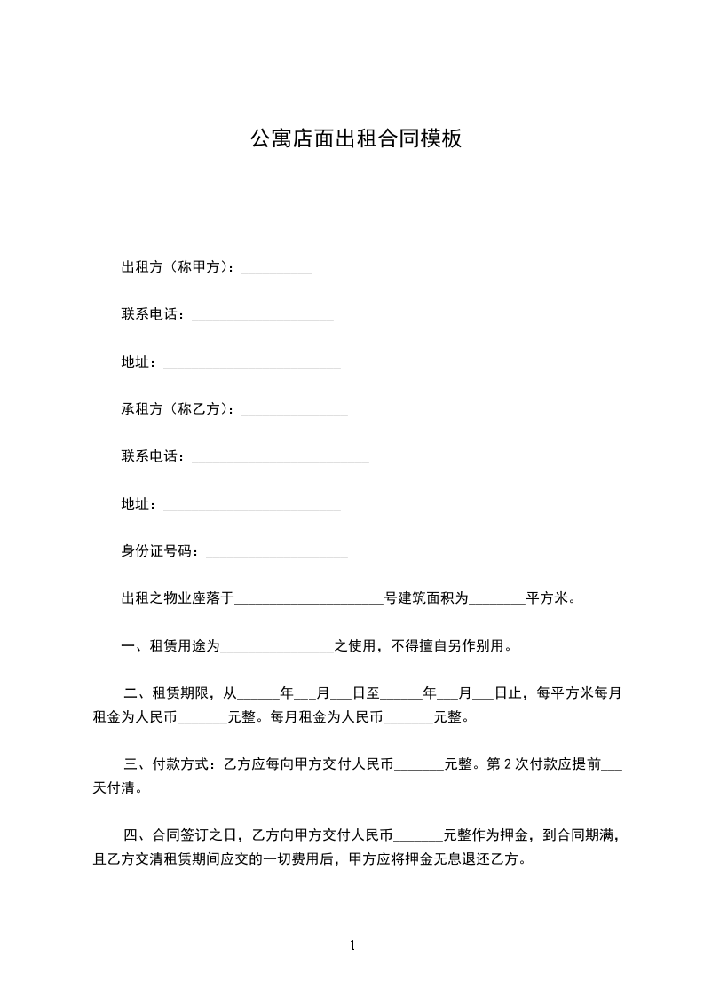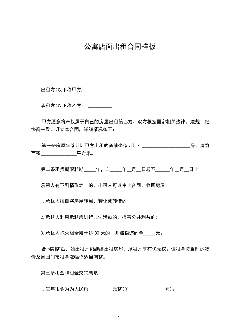 甲方将店面出租给乙方。为明确出租期间的责任和义务,经双方协商,特定如下合同: