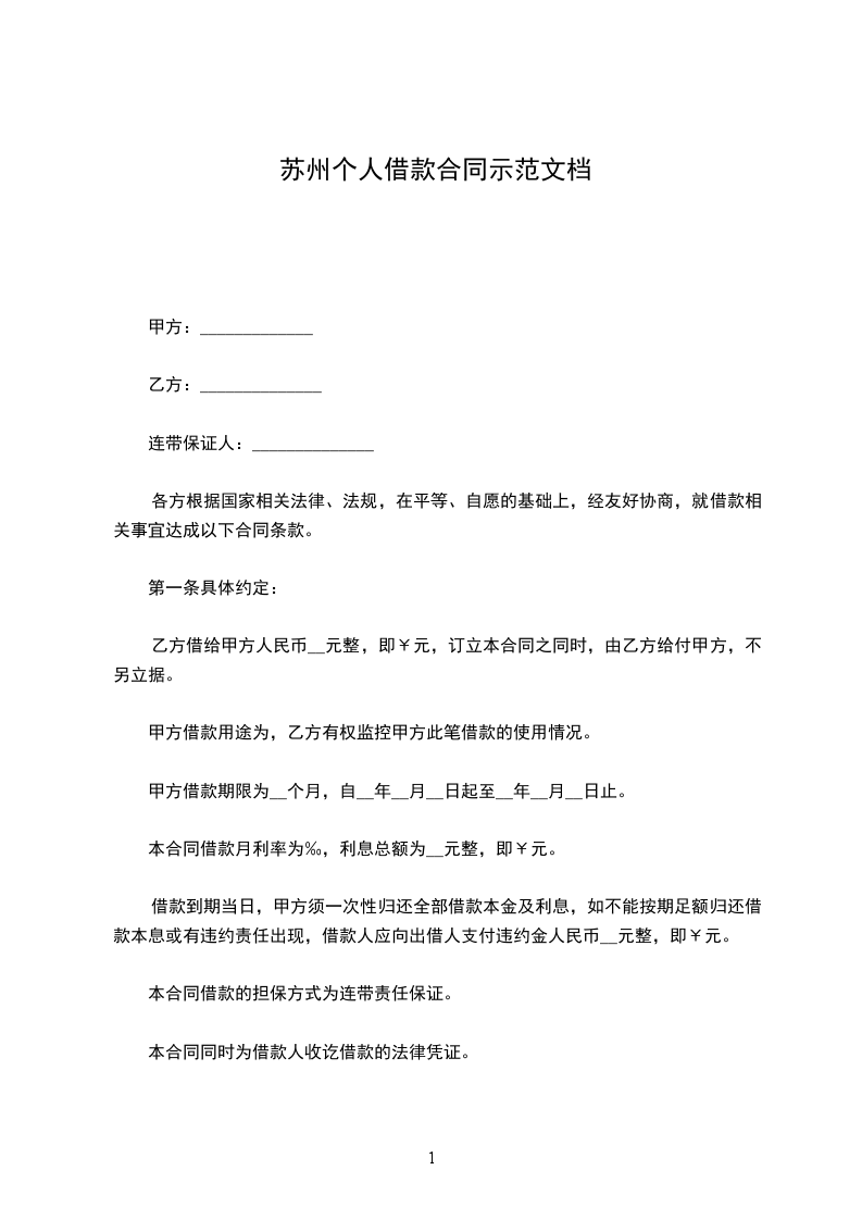 乙方借给甲方人民币__元整,即¥元,订立本合同之同时,由乙方给付甲方,不另立据。