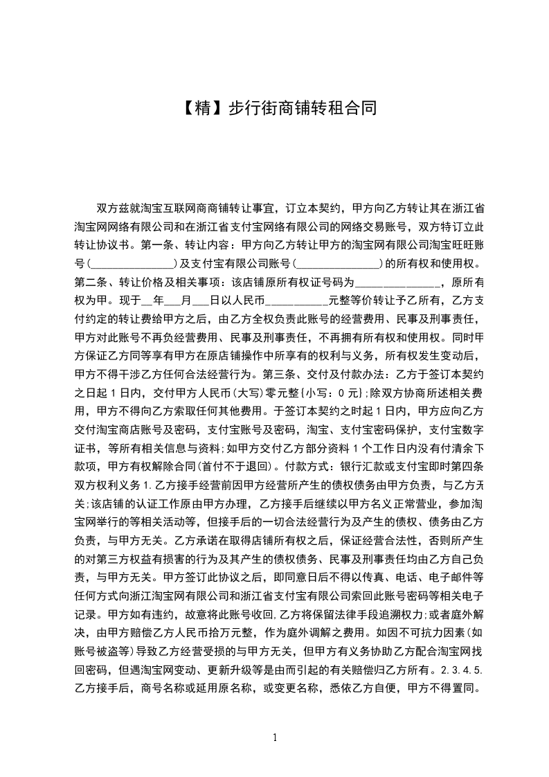 双方兹就淘宝互联网商商铺转让事宜,订立本契约,甲方向乙方转让其在浙江省淘宝网网络有限公司和在浙江省支付宝网络有限公司的网络交易账号,双方特订立此转让协议书。
