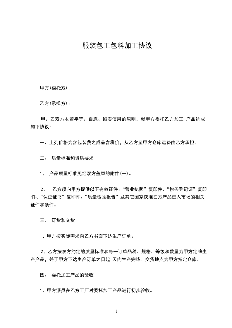 甲、乙双方本着平等、自愿、诚实信用的原则,就甲方委托乙方加工 产品达成如下协议: