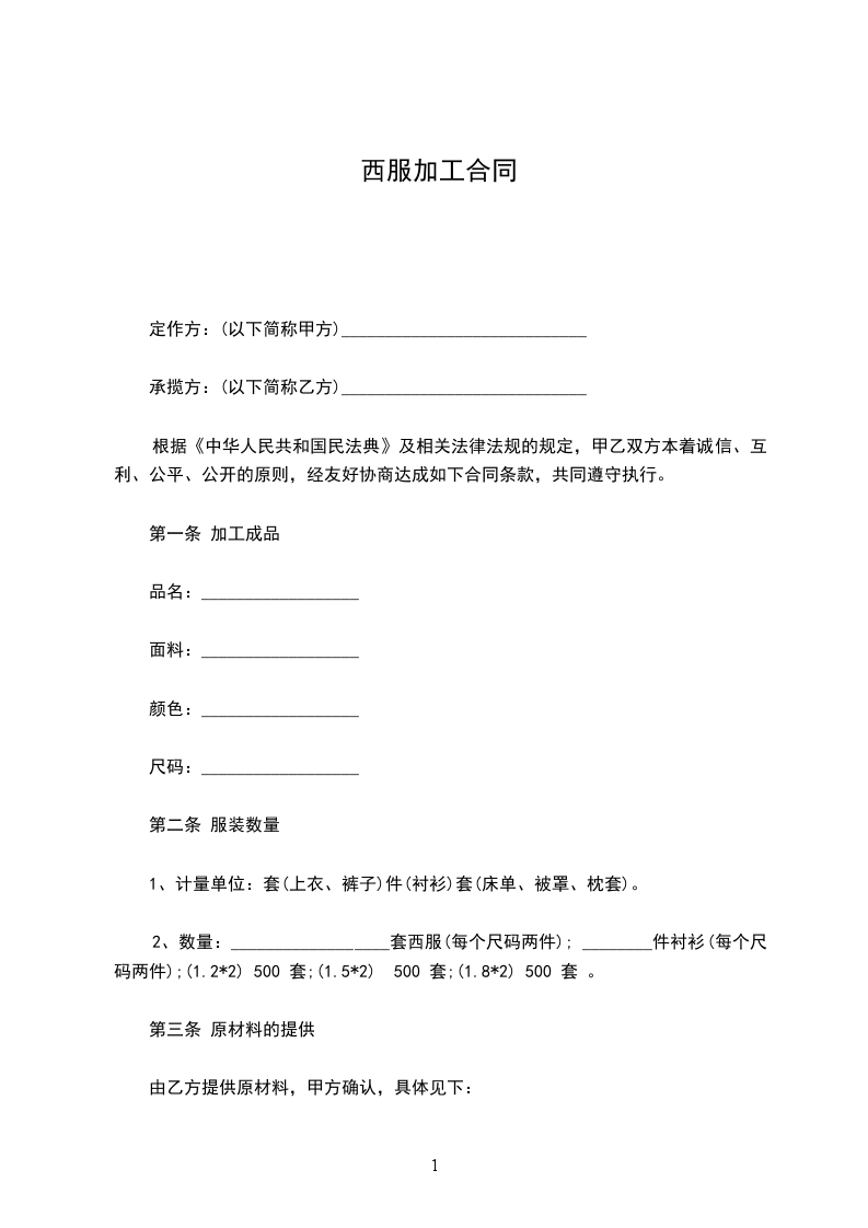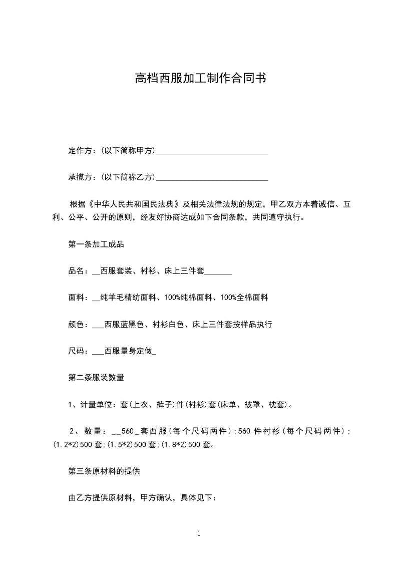 2、数量:__________________套西服(每个尺码两件); ________件衬衫(每个尺码两件);(1.2*2) 500 套;(1.5*2) 500 套;(1.8*2) 500 套 。