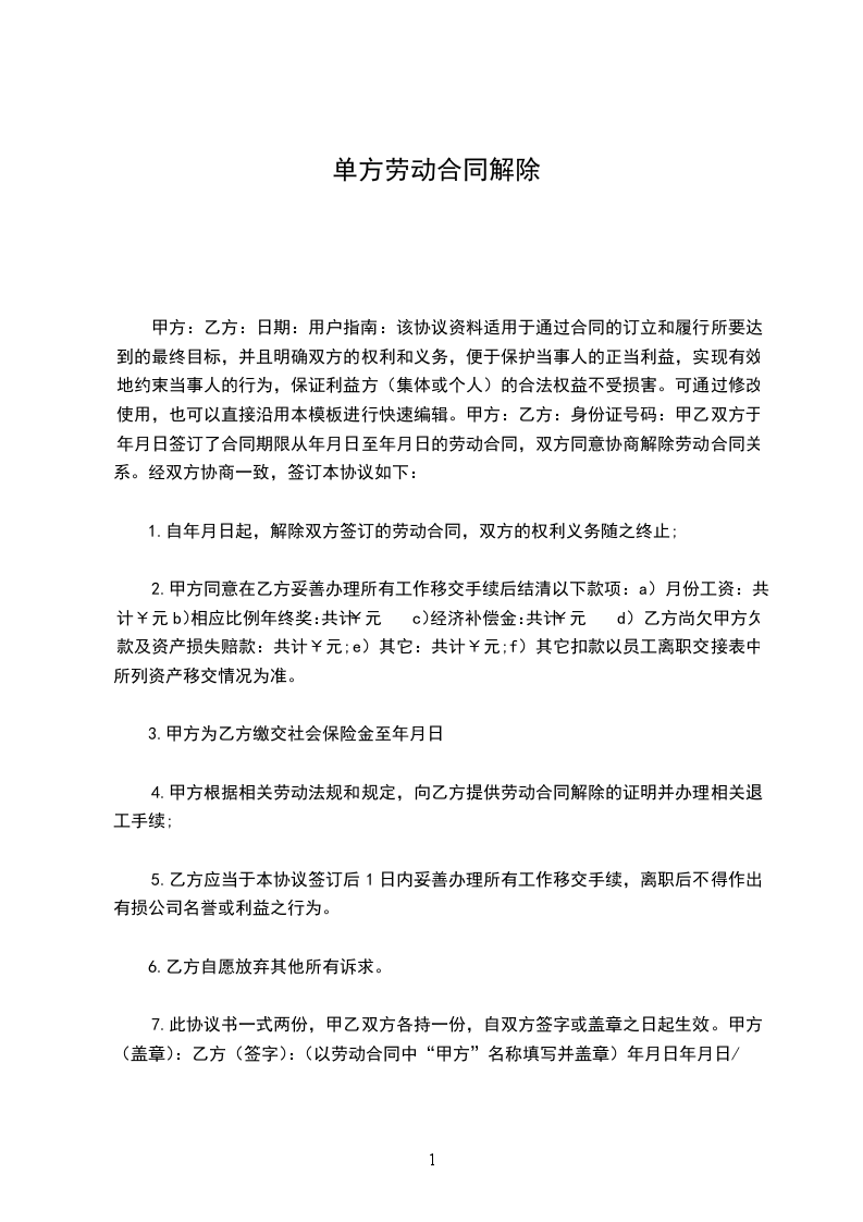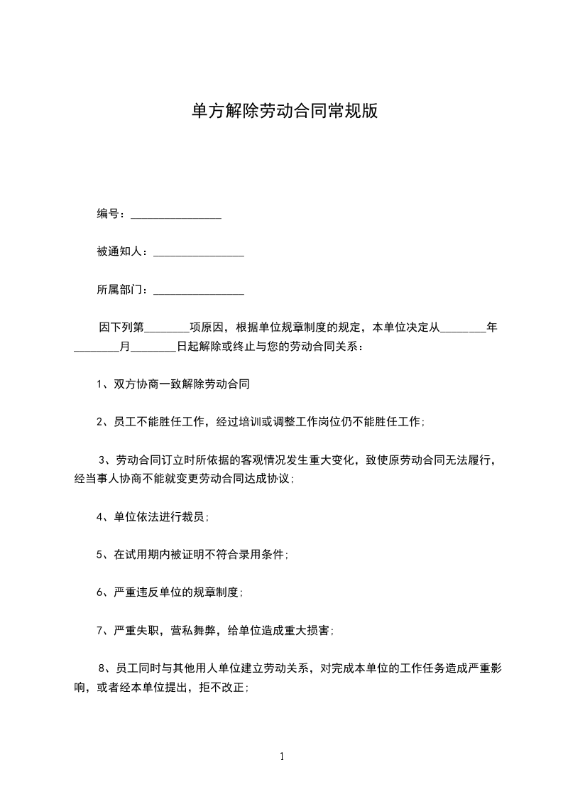 甲方(用人单位):乙方(劳动者):依据《劳动合同法》相关规定,公司依法解除此前您与公司订立的劳动合同(合同期限:________年____月____日至________年____月____日)。解除的理由如下第款: