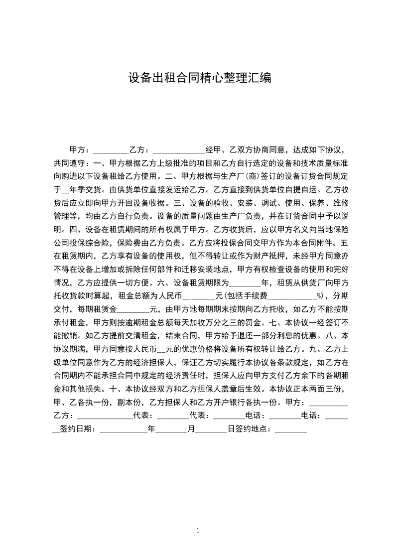 一、甲方根据乙方上级批准的项目和乙方自行选定的设备和技术质量标准,向购进以下设备租给乙方使用。