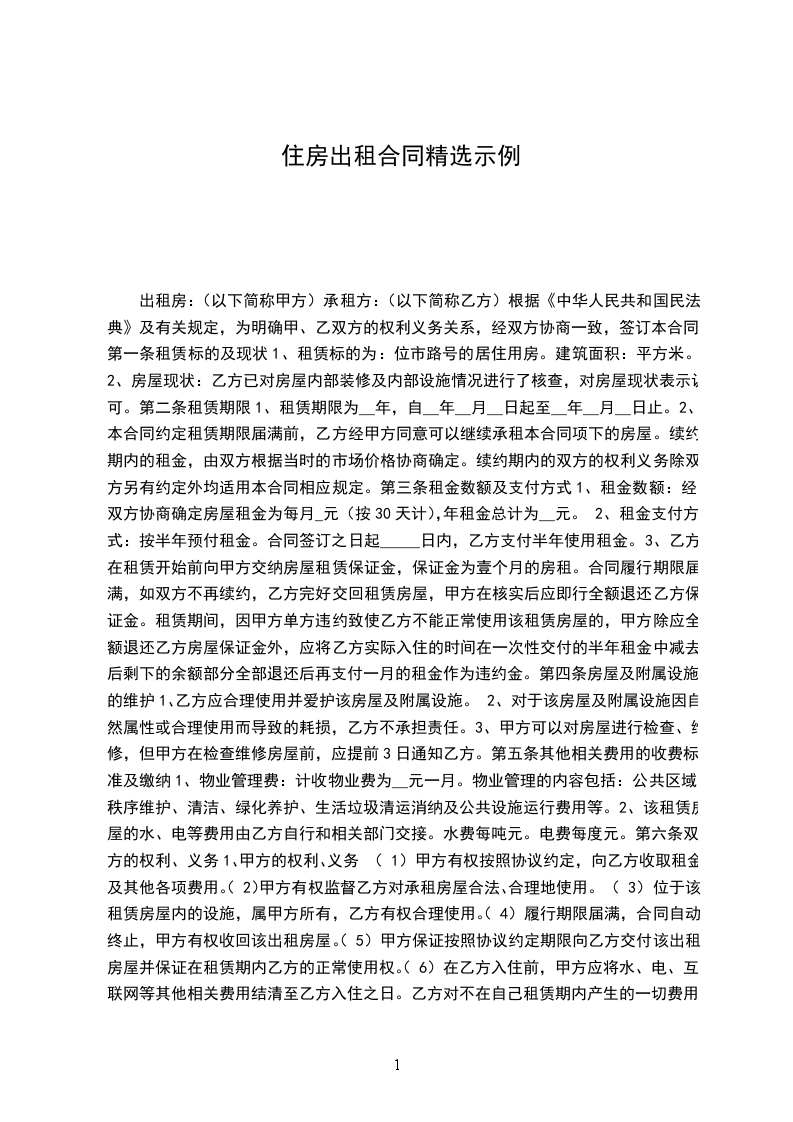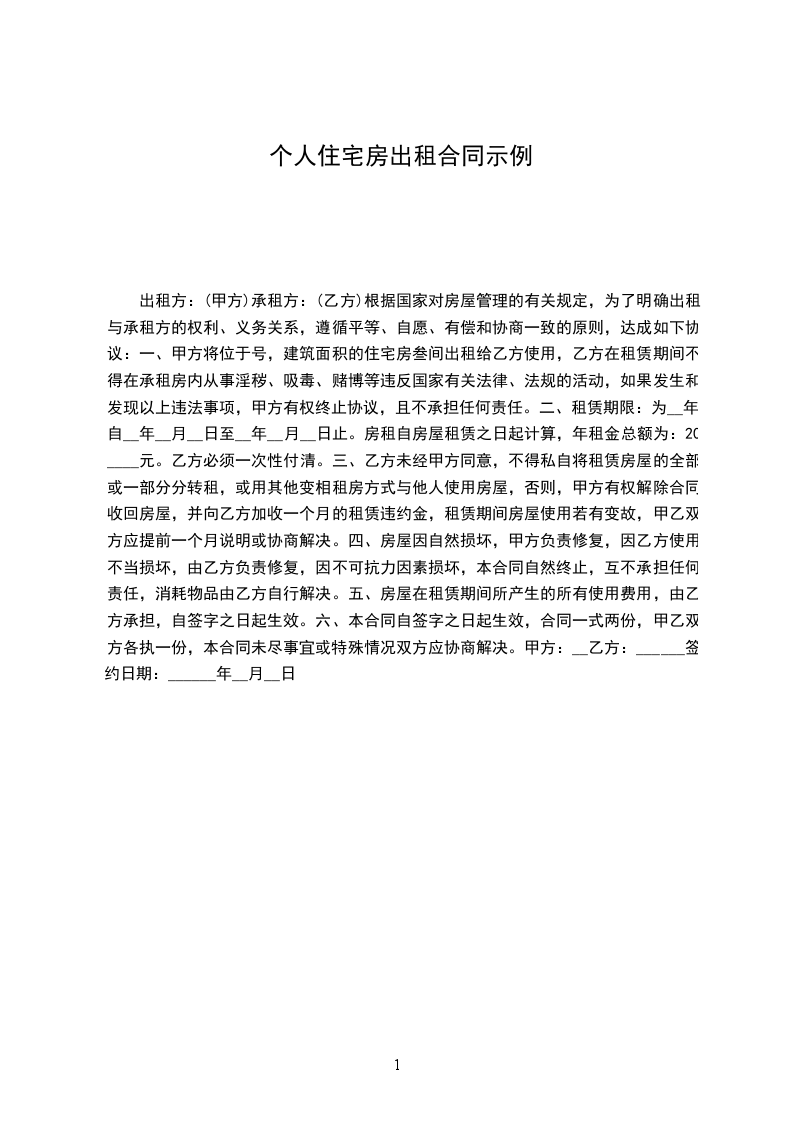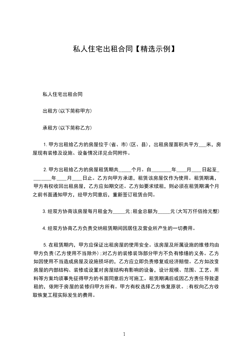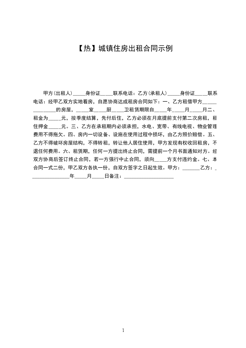 甲方现有______________________________租给乙方使用,该房屋租金为(人民币)___千___百__拾__元整。租金按月结算,由乙方于每__个月交付给甲方。