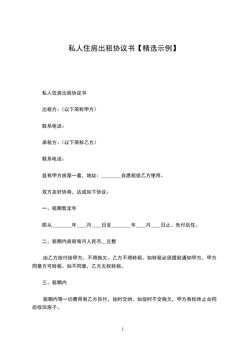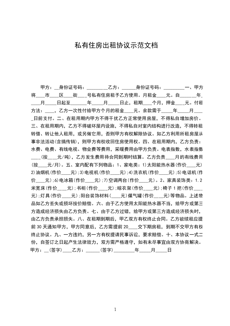 租赁期间,任何一方提出终止合同,需提前_____月书面通知对方,经双方协商后签订终止合同书,在终止合同书签订前,本合同仍有效。本协议自双方签字有效,本协议一式两份。