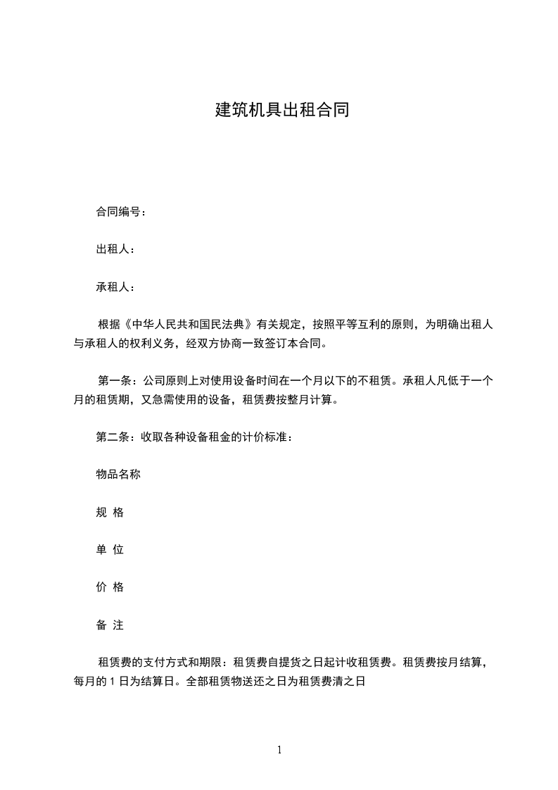 第一条:公司原则上对使用设备时间在一个月以下的不租赁。承租人凡低于一个月的租赁期,又急需使用的设备,租赁费按整月计算。