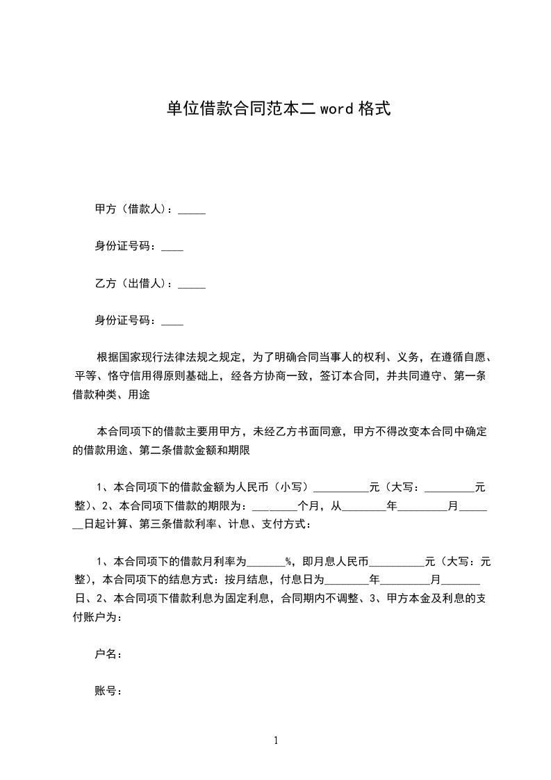 1、本合同项下的借款月利率为_______%,即月息人民币__________元(大写:元整),本合同项下的结息方式:按月结息,付息日为________年_________月_______日、2、本合同项下借款利息为固定利息,合同期内不调整、3、甲方本金及利息的支付账户为: