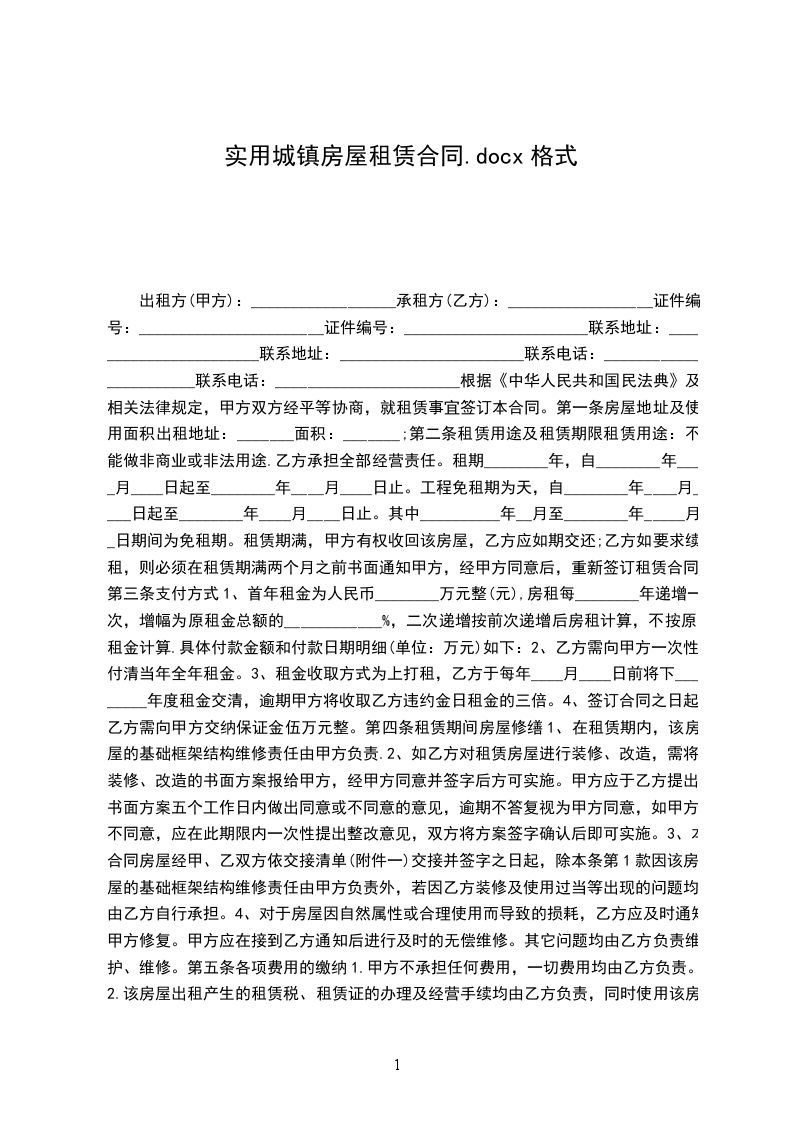 第一条甲方同意将坐落在____________________________(巷、里)_______________________号座________________房号的房地产________________出租给乙方作__________________用途使用,建筑面积________________平方米。