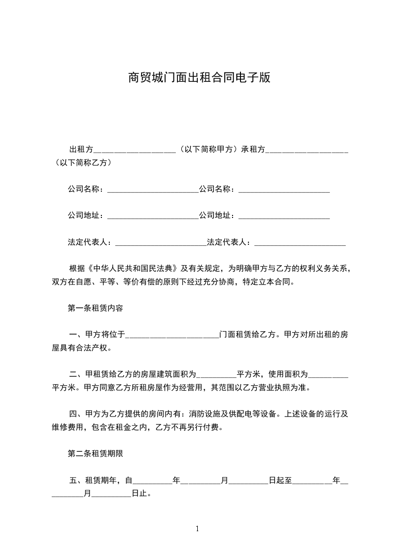 1、甲方将其合法拥有的座落于门面出租给乙方用于经营。该门面建筑面积共__平方米。