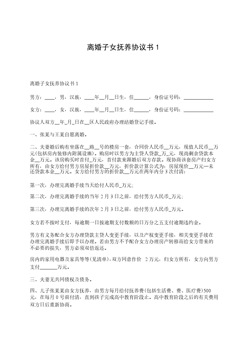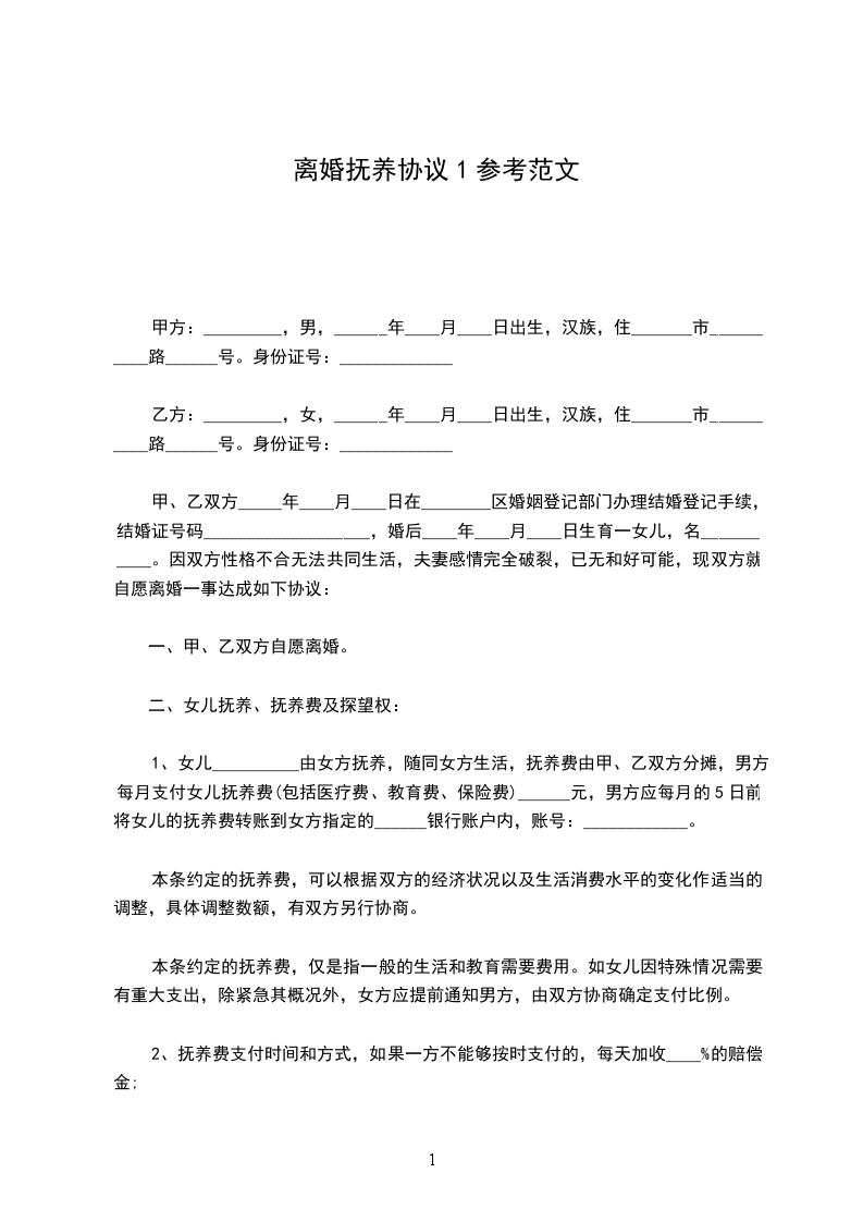 2、抚养费支付时间和方式,如果一方不能够按时支付的,每天加收____%的赔偿金;