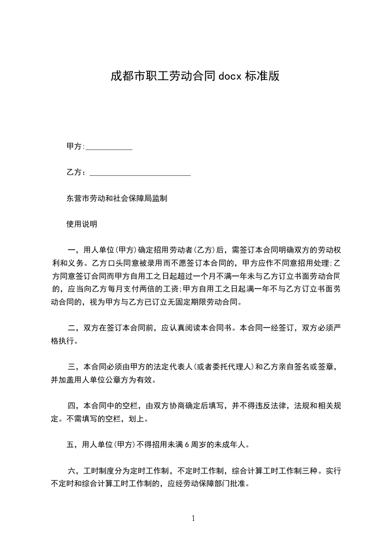 四,本合同中的空栏,由双方协商确定后填写,并不得违反法律,法规和相关规定。不需填写的空栏,划上。