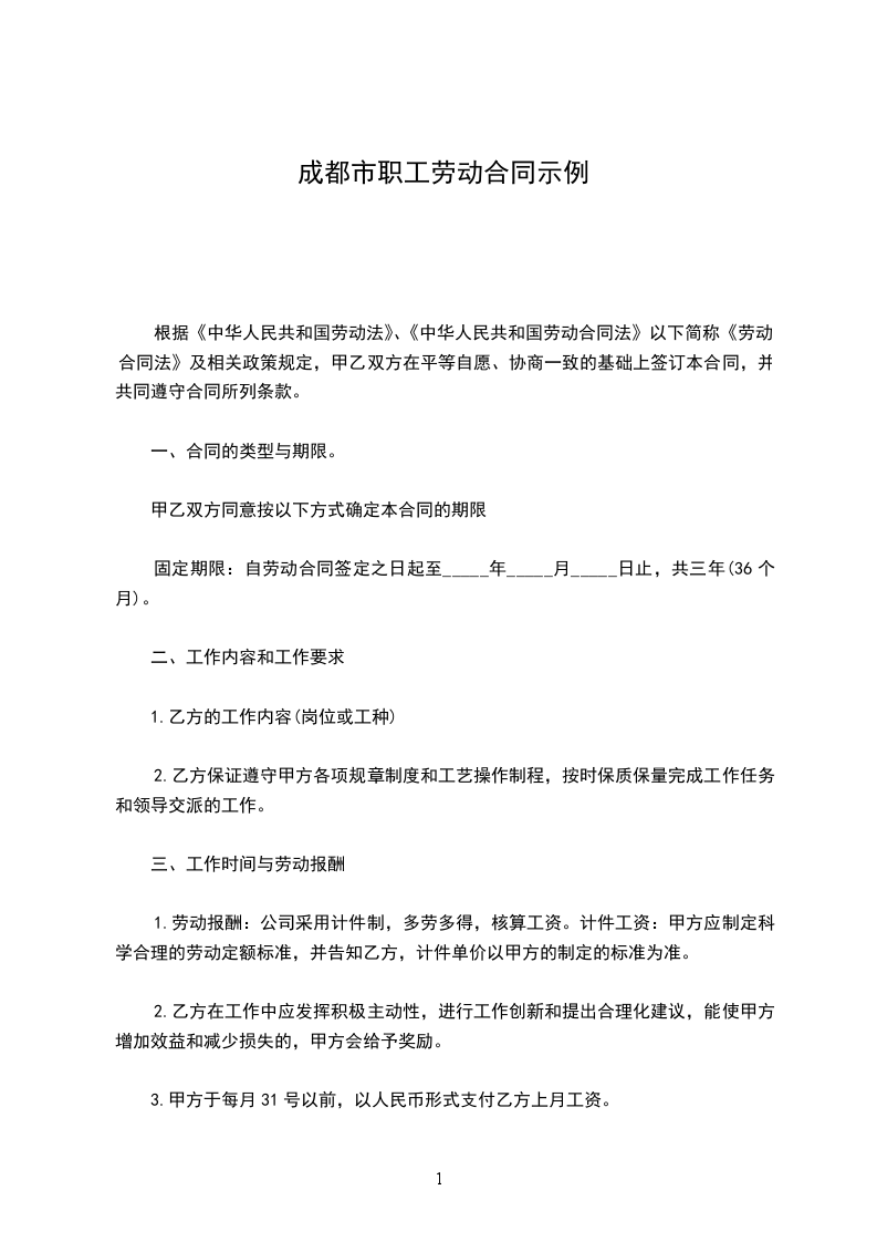 甲方(用人单位):___________乙方(职工):___________