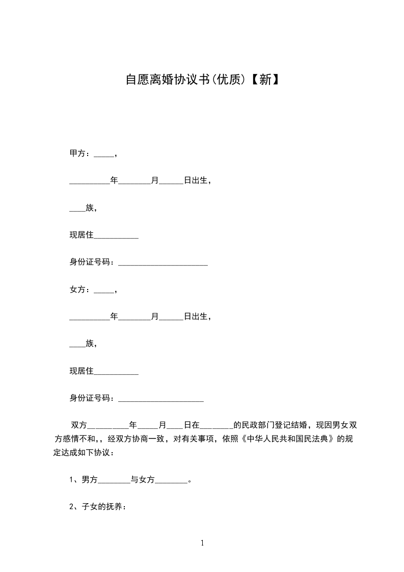 双方__________年_____月____日在________的民政部门登记结婚,现因男女双方感情不和,,经双方协商一致,对有关事项,依照《中华人民共和国民法典》的规定达成如下协议: