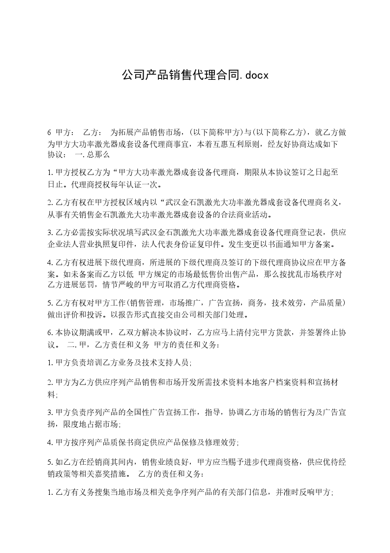 3、乙方作为甲方的经销商,应尽经销商的责任。在上述区域应按甲方销售策略销售要求,尽最大努力将甲方产品销售。甲方也应保证供应足够的货源。