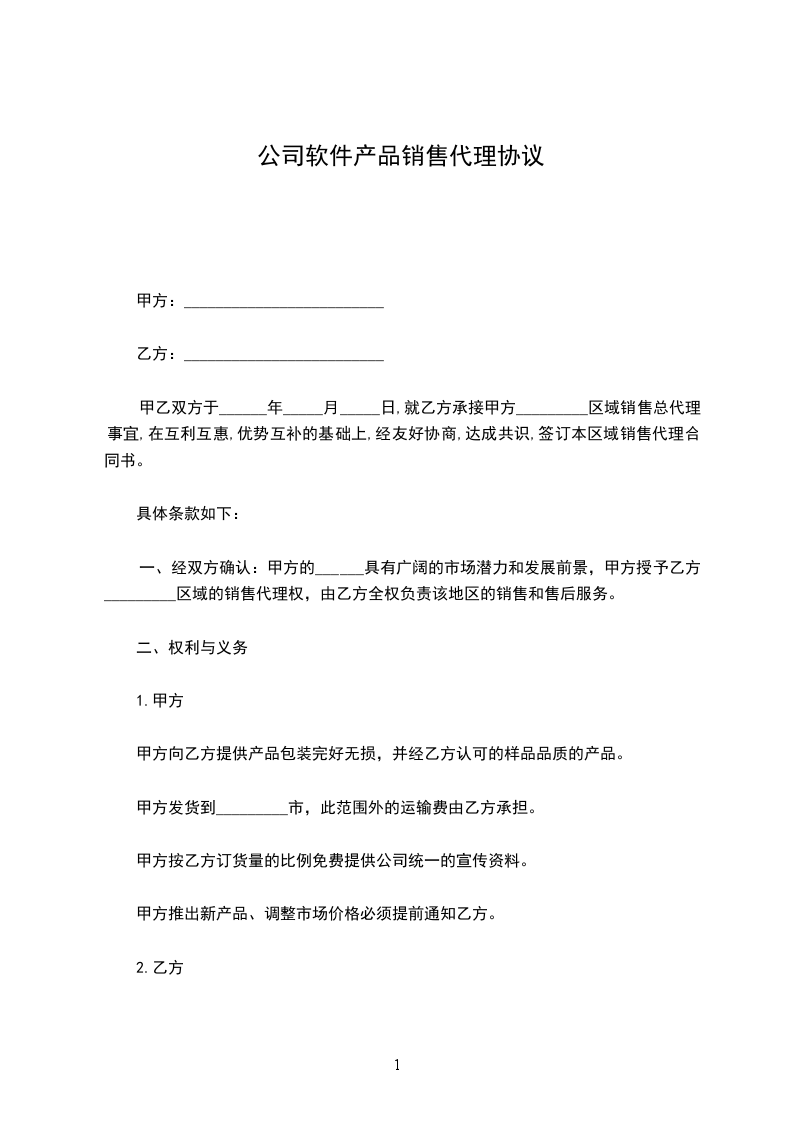 2、销售范围:甲方指定乙方在_______范围内销售甲方产品。
