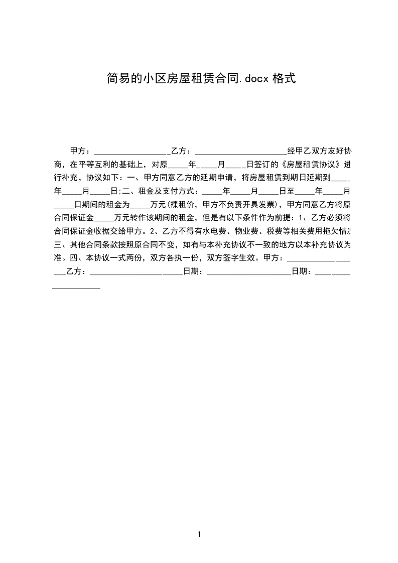 经甲乙双方友好协商,在平等互利的基础上,对原_____年_____月_____日签订的《房屋租赁协议》进行补充,协议如下: