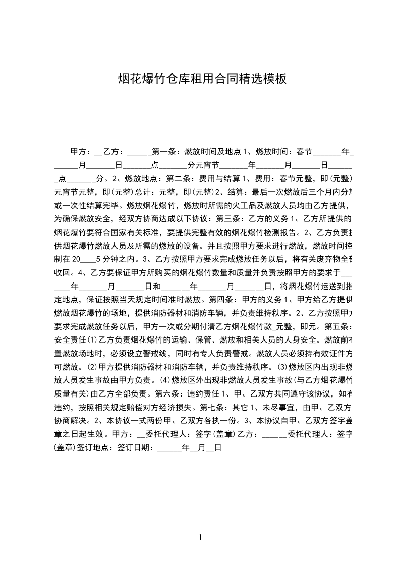 1、乙方所提供的烟花爆竹要符合国家有关标准,要提供完整有效的烟花爆竹检测报告。