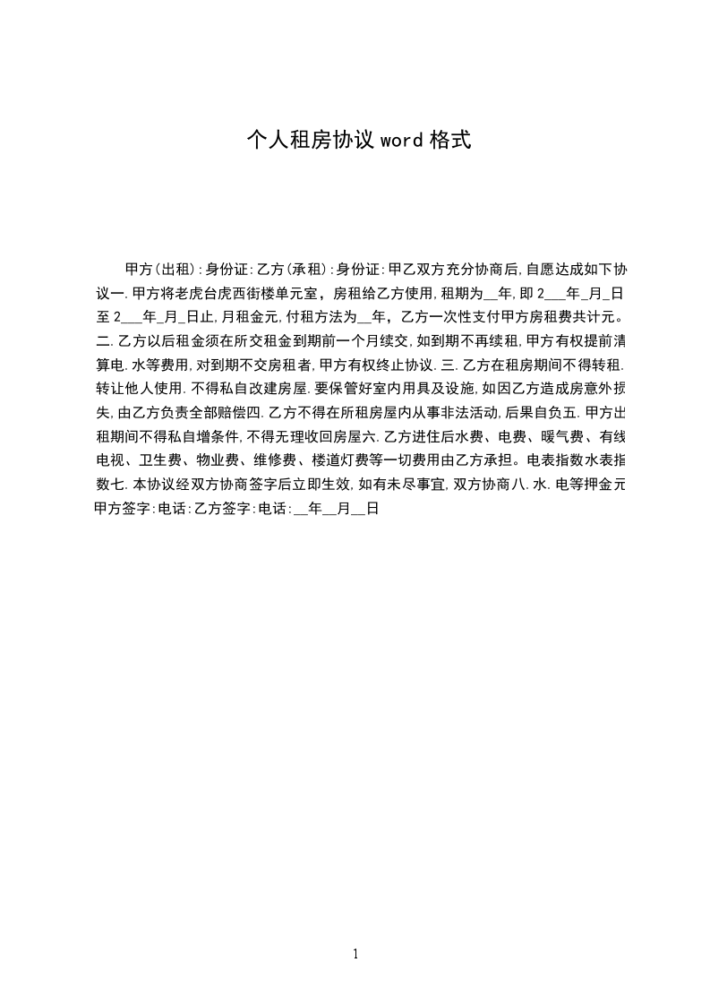 出租方(以下简称甲方):_____________身份证号:__________________________