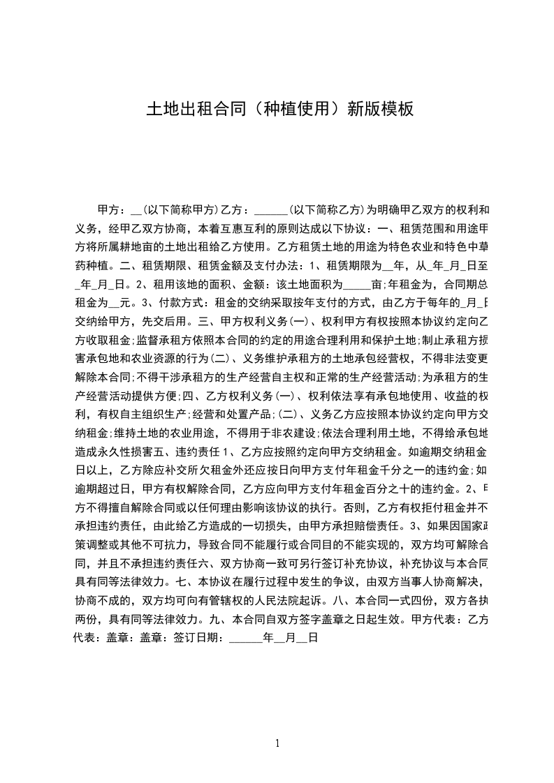 乙方租赁土地的用途为特色农业和特色中草药种植。